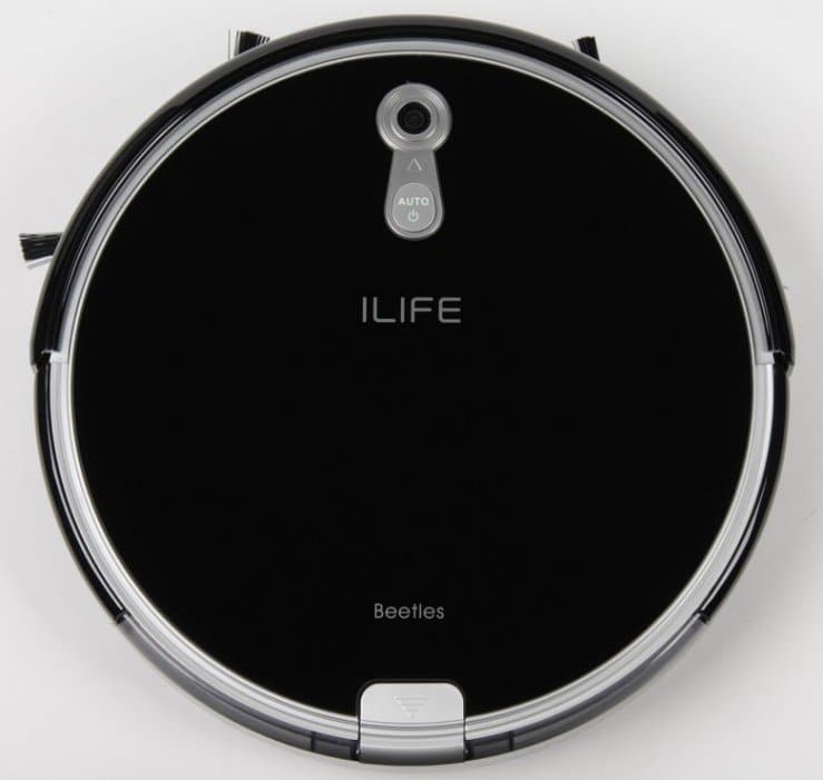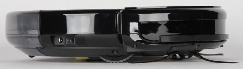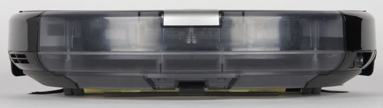 Корпус робота изготовлен в основном из пластика. Верхняя половина корпуса и бампер имеют черное зеркально-гладкое относительно устойчивое к повреждениям покрытие, а нижняя — с более практичной матовой поверхностью без покрытия. Преимущественно темный цвет корпуса осложняет поиск робота в темных закоулках квартиры, когда он по какой-то причине не вернется на базу, также робота сложнее заметить боковым зрением, когда он путается под ногами, а значит, с большей вероятностью на него можно наступить. Верхняя панель прикрыта пластиной из минерального закаленного стекла, поэтому она не царапается и легко очищается, но и следы от пальцев на ней очень заметны. Пластиковый ободок сверху по периметру, вставка контрольной панели и фиксатор пылесборника имеют серебристое покрытие. На верхней панели ближе к передней части есть единственная механическая кнопка с подсвечивающимися словом Auto и значком питания.