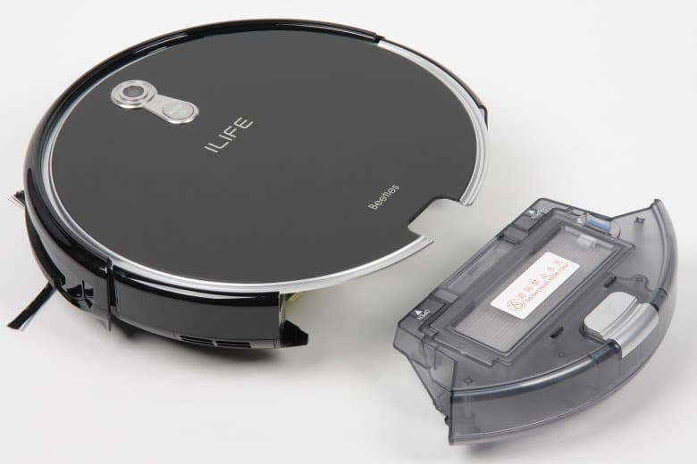 Нажав на фиксатор сзади, можно отсоединить пылесборник от корпуса робота.