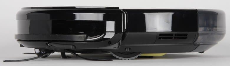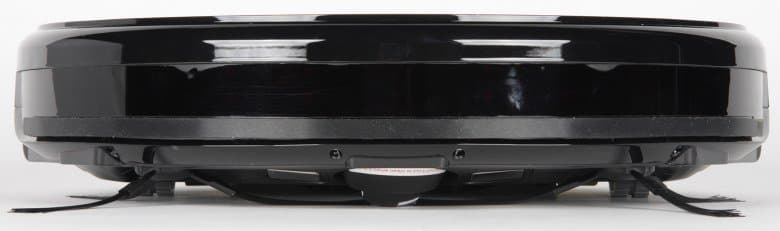 На днище расположены две контактные площадки, передний опорный поворотный ролик, боковые щеточки, крышка батарейного отсека, два ведущих колеса, отсек основной щетки. Ближе к краю сразу за бампером расположены три ИК-датчика перепада высоты, благодаря которым робот-пылесос может избежать падения со ступенек.