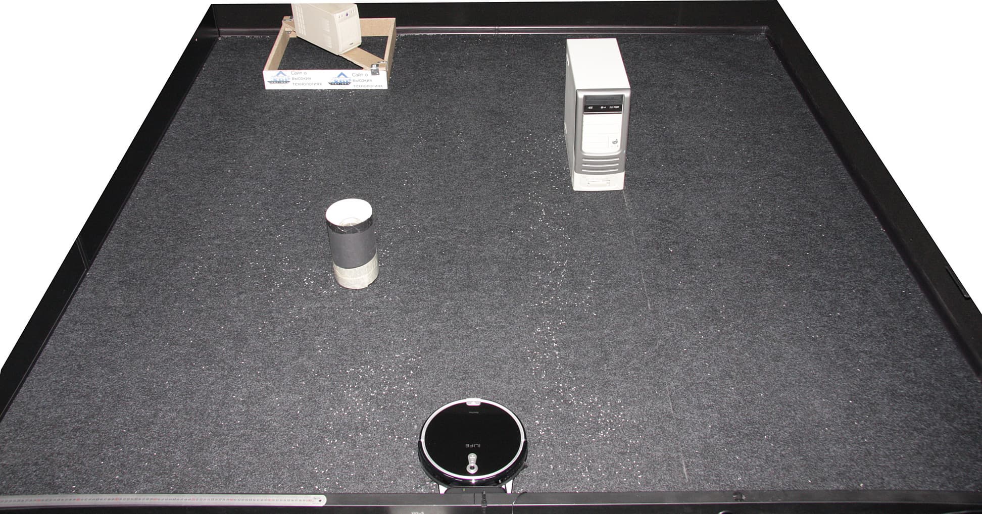 Установлена была щетка без ворса, мощность вентилятора — нормальная. На одном заряде аккумулятора робот убрал этот участок примерно 2,5 раза (235 м² суммарно), затратив на все около 2 часов 30 минут Два раза робот, закончив уборку, целенаправленно возвращался на базу и парковался на ней (но его мы с нее сразу запускали обратно на уборку). Один раз уборку пришлось прервать примерно на половине, так как что-то попало в оптический датчик за бампером, пришлось робота потрясти, вернуть на базу и запустить на уборку. На взгляд особо больших пропусков не было. Стоит отметить, что, несмотря на препятствия в виде порожков уступом и ножек многочисленных стульев, робот заезжал, куда мог протиснуться и нигде не застревал.