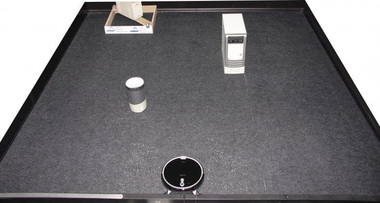 Доступную территорию робот однократно проходит змейкой с минимальным перекрытием и по возможности наиболее рациональным способом. Робот определенно строит и использует карту убираемой поверхности, это видно по маршруту движения — он по возможности убирает поверхность только один раз и целенаправленно переходит к тому месту, которое он еще не убирал. Без карты такое поведение было бы невозможно осуществить. По крайней мере, в небольшом тестовом помещении робот сохраняет ориентацию даже в полной темноте, то есть камера не является основным и единственным навигационным прибором. Робот с готовностью забирается в узкий загончик (на 50 мм шире ширины робота) и тщательно там убирает. С базой робот обращается очень аккуратно, даже слишком аккуратно, не толкает и не сдвигает, но и объезжает ее далеко, оставляя около нее часть мусора. Паркуется робот уверенно, и в наших тестах всегда с первого раза. Между высокими вертикальными и хорошо отражающими ИК-лучи стенками и корпусом робота обычно остается небольшой зазор, тогда как к низким, наклонным (например, к плинтусу) или черным в ИК-свете стенкам робот подъезжает вплоть до срабатывания механического датчика в бампере.