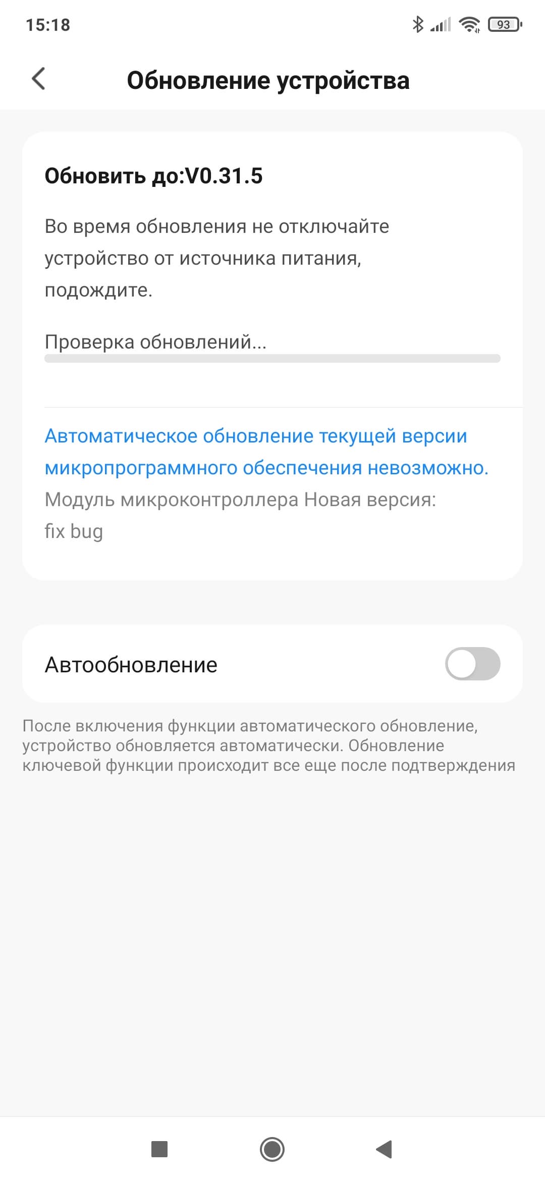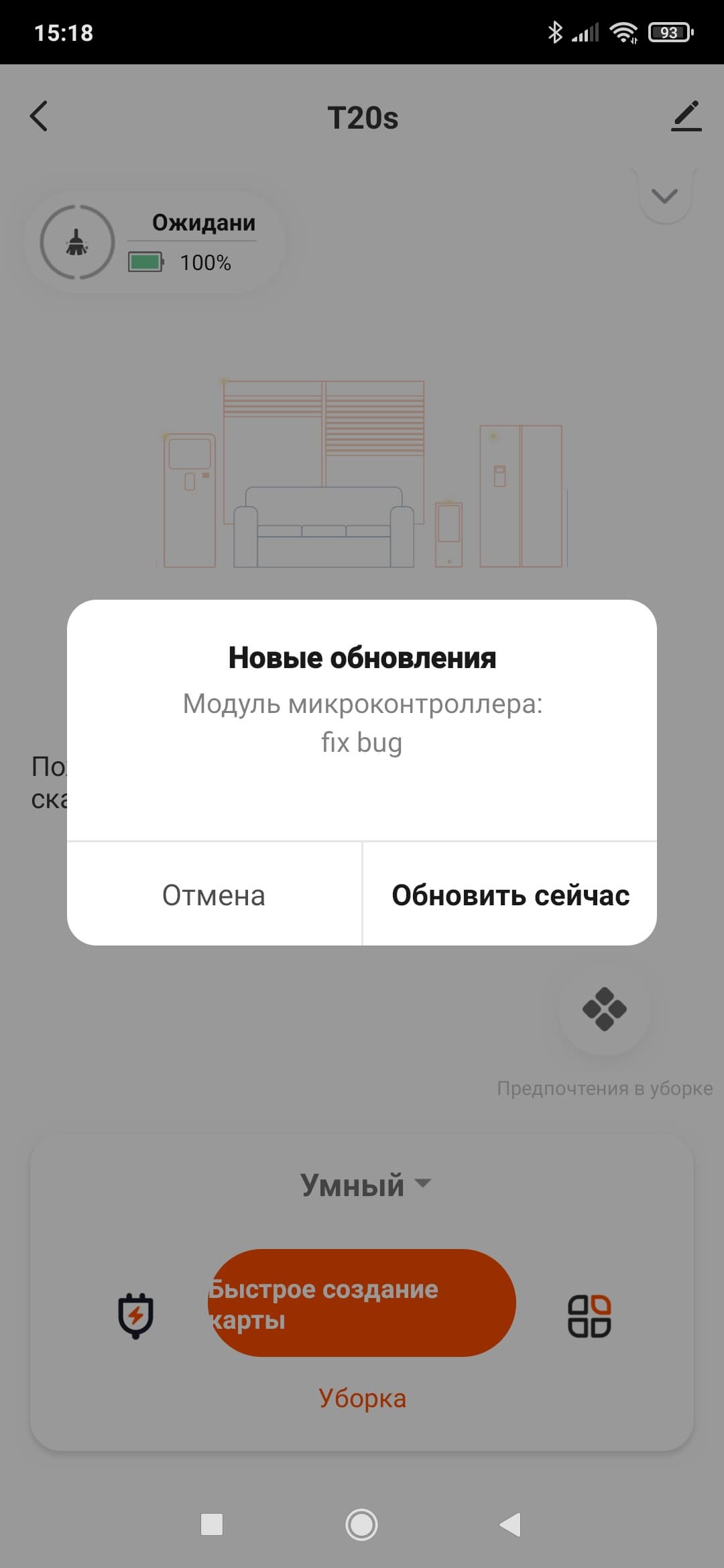 При первом запуске приложение нашло обновление прошивки для пылесоса и предложило его немедленно установить. Мы так и поступили.