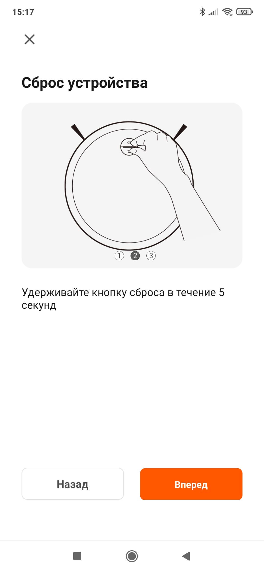 После этого приложение запрашивает SSID и пароль от беспроводной сети и выдает инструкции, как подготовить робота к подключению.