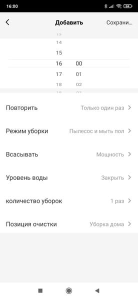 Планировщик уборок по расписанию называется «Таймер». Приложение позволяет настроить несколько запусков в заданное время нужного дня недели, указав для каждой задачи мощность всасывания и количество проходов по помещению. При желании можно выбрать для уборки одну или несколько выбранных комнат.