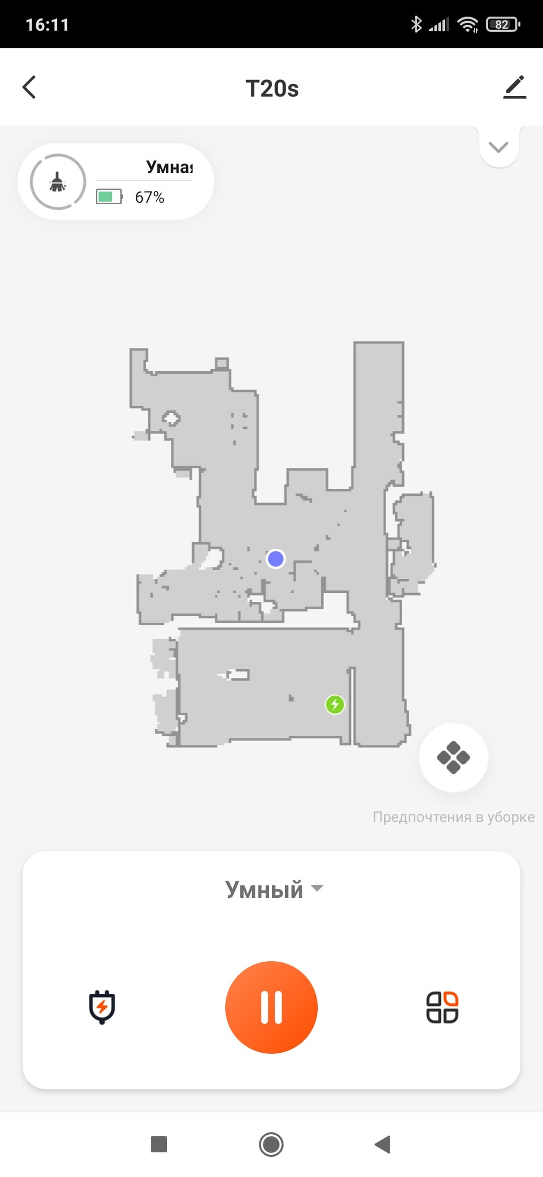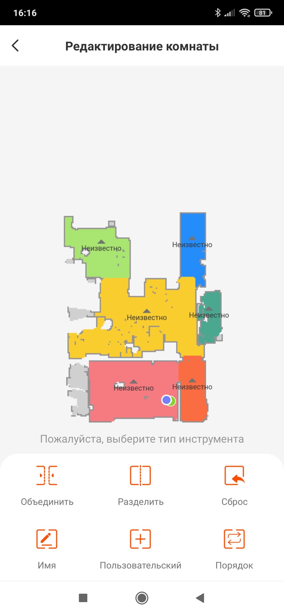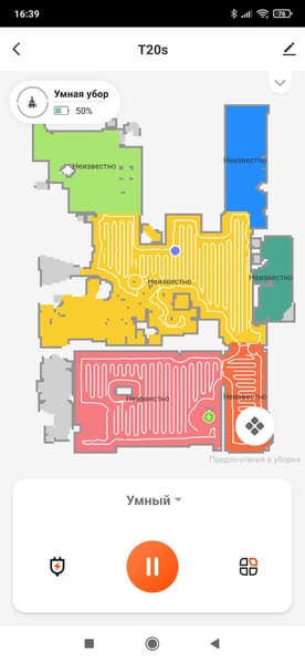Доступна также покомнатная уборка: в этом случае робот отправится в отмеченные помещения и наведет в них порядок, проигнорировав все остальные.