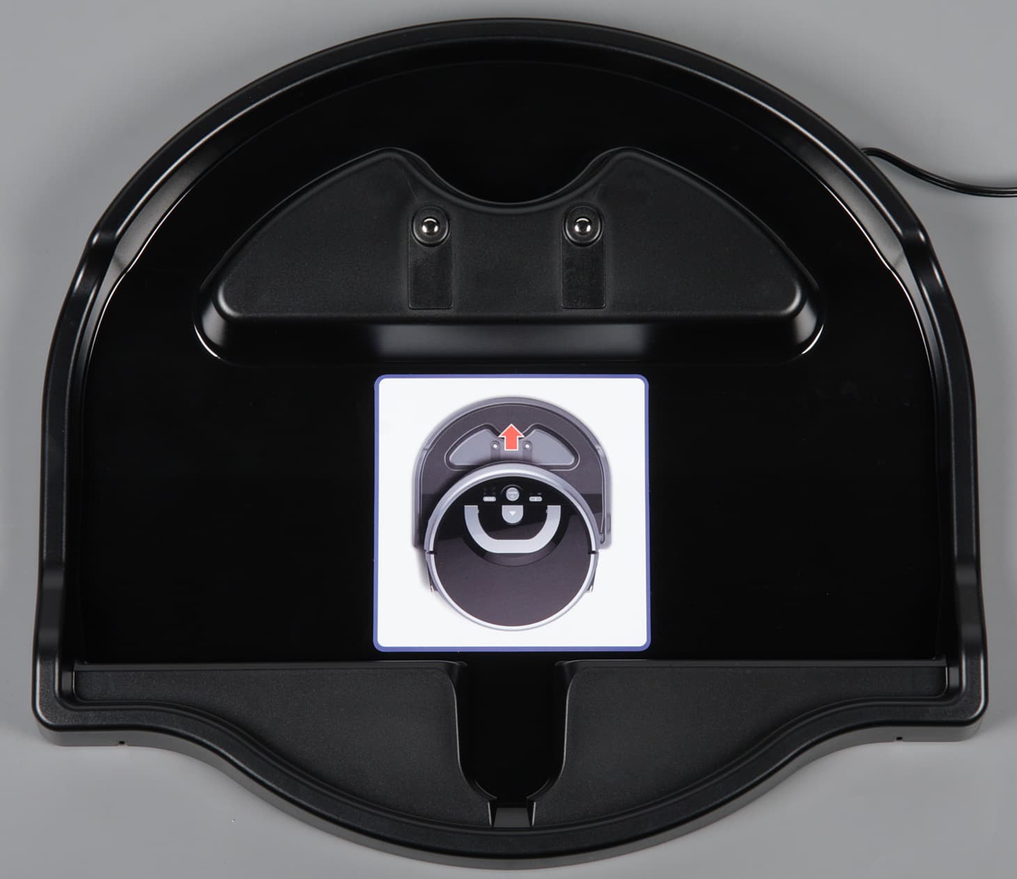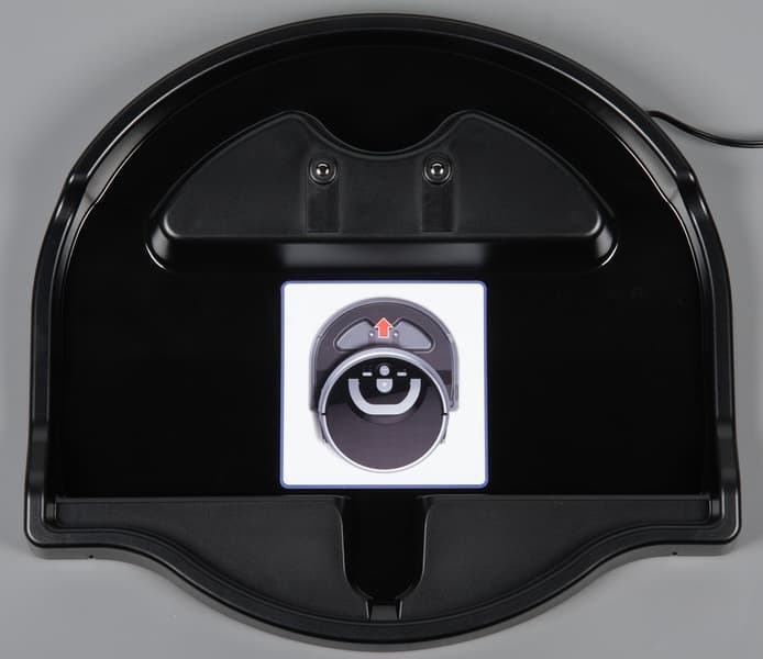 База, на которой пылесос заряжается, представляет собой фигурное неглубокое корытце с контактными площадками на выступе. Робот сам на базу не заезжает, его туда пользователю придется ставить.