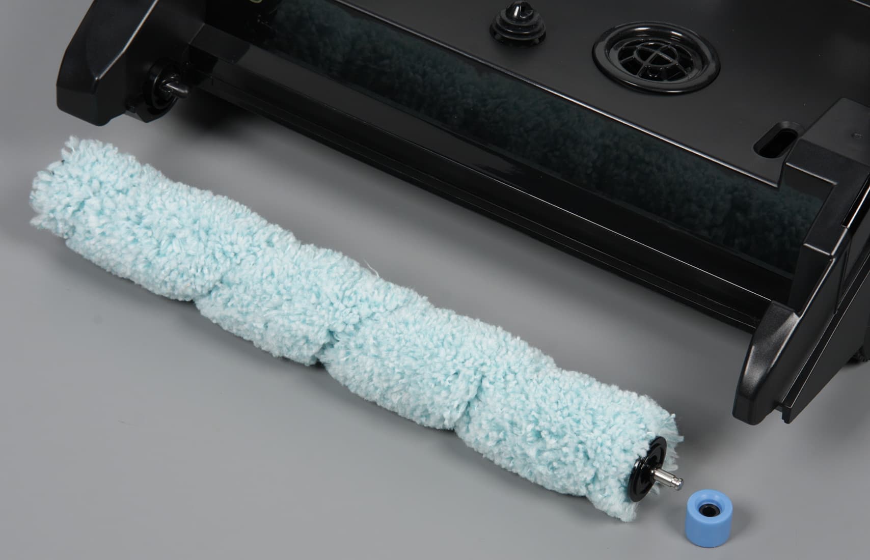 При движении робота по полу водяной насос забирает воду из бака для чистой воды и разбрызгивает ее на пол перед валиком через шесть отверстий. Валик вращается, отмывает пол, захватывает частицы грязи и другой мусор. Помогает ему в этом скребок, установленный непосредственно за валиком. Вентилятор робота прокачивает воздух через отсек валика, освобождая валик от грязной воды и мусора. Все это попадает в бак для грязной воды, где и скапливается. Далее воздух через пористый фильтр попадает на вентилятор и выдувается через решетку на днище. Объем емкости для грязной воды немного больше объема емкости для чистой, поэтому робот может мыть как сухие, так и мокрые полы, собирая избыточную влагу. Наличие воды в емкости для чистой воды определяется с помощью датчика проводимости, поэтому в робота нельзя заливать дистиллированную воду. При желании в воду можно добавить немного нейтрального моющего средства.
