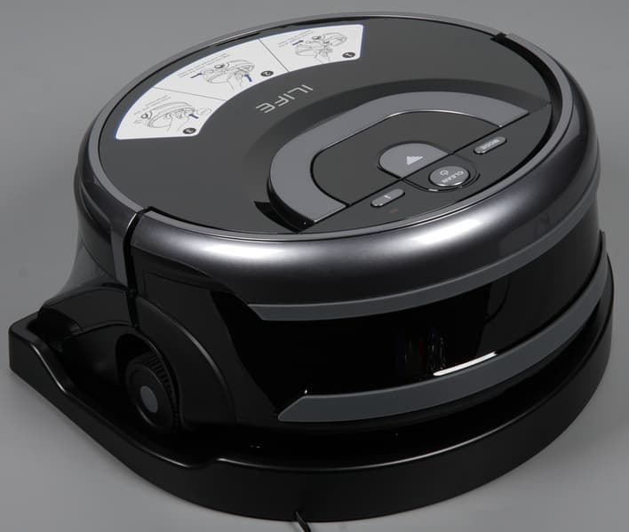 Корпус робота изготовлен в основном из черного пластика с матовой поверхностью. Верхняя панель имеет зеркально-гладкое черное покрытие, относительно устойчивое к появлению царапин.
