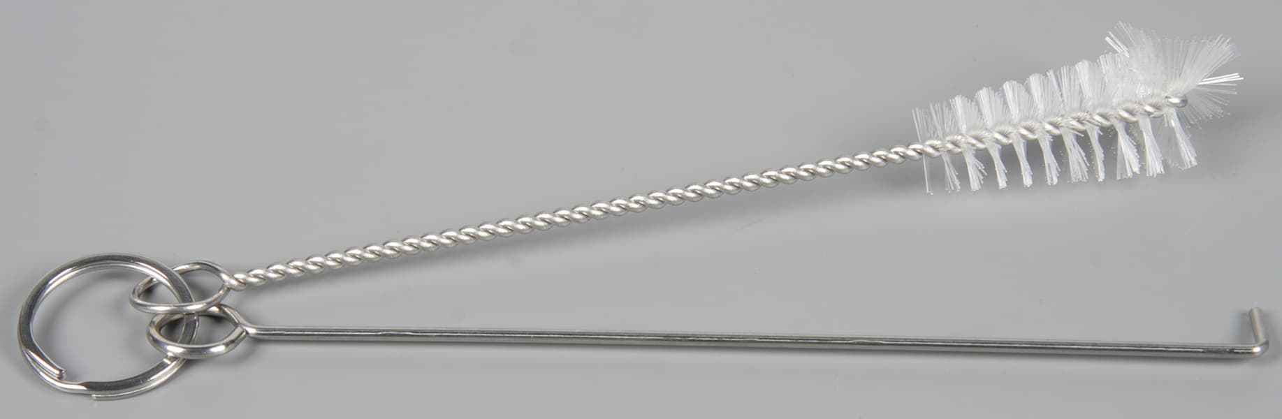 Запасные части и расходные материалы в комплекте поставки представлены только валиком. Есть и два инструмента для чистки — это ершик и что-то вроде миниатюрной кочерги. Скрепляющее их кольцо и сами инструменты (кроме щетины, разумеется) изготовлены из нержавеющей стали.