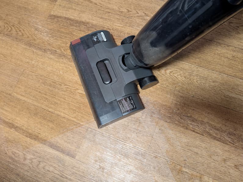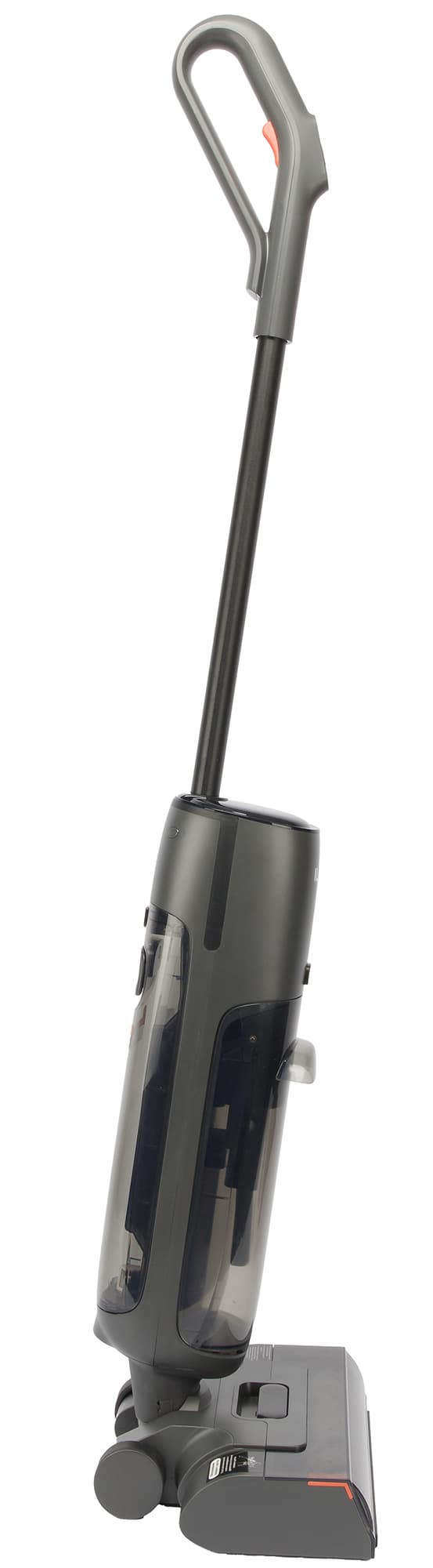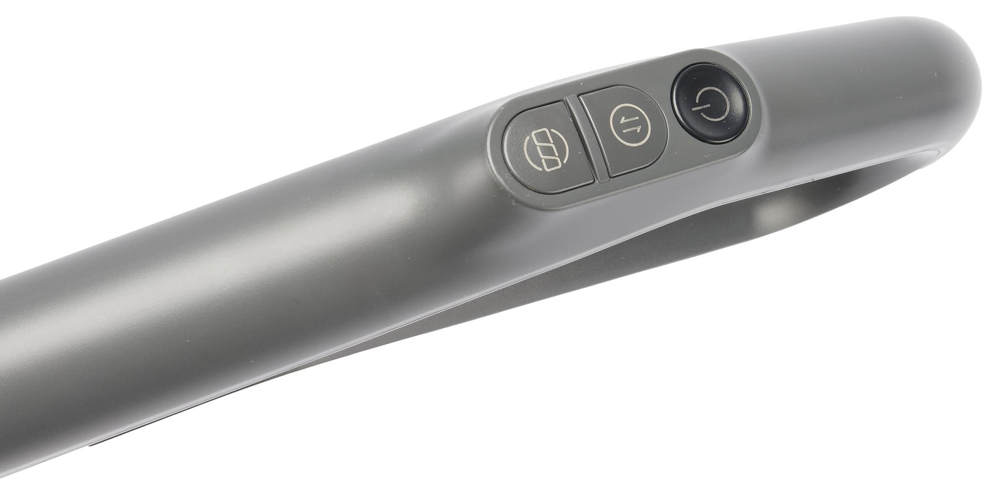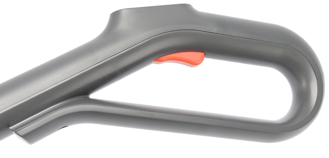 Оранжевая клавиша на обратной стороне ручки управляет подачей воды на электрощетку. Расход жидкости в этой модели зависит от пользователя: напольное покрытие увлажняется только тогда, когда это требуется.