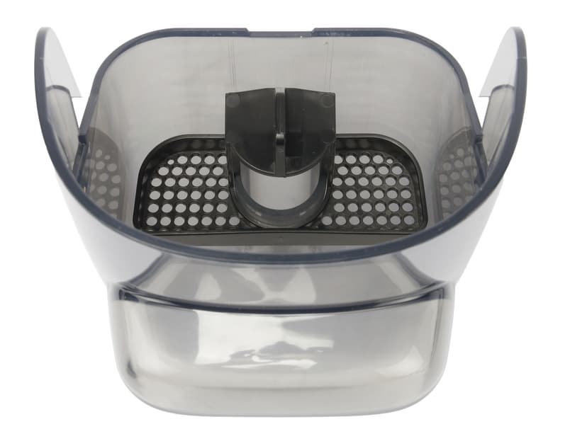 В передней части корпуса размещается резервуар для мусора и грязной жидкости. Чтобы его извлечь, следует нажать на кнопку над отсеком и потянуть контейнер на себя.