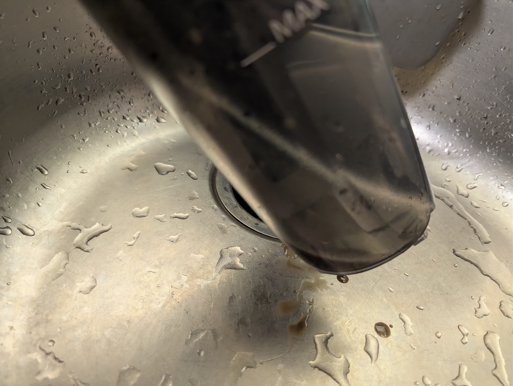 Вес пылесоса с пустыми резервуарами равен 4540 г. Емкость для чистой воды, заполненная «под пробку», вмещает 580 мл. Таким образом, общая масса заправленного и готового к работе устройства составляет 5120 г.