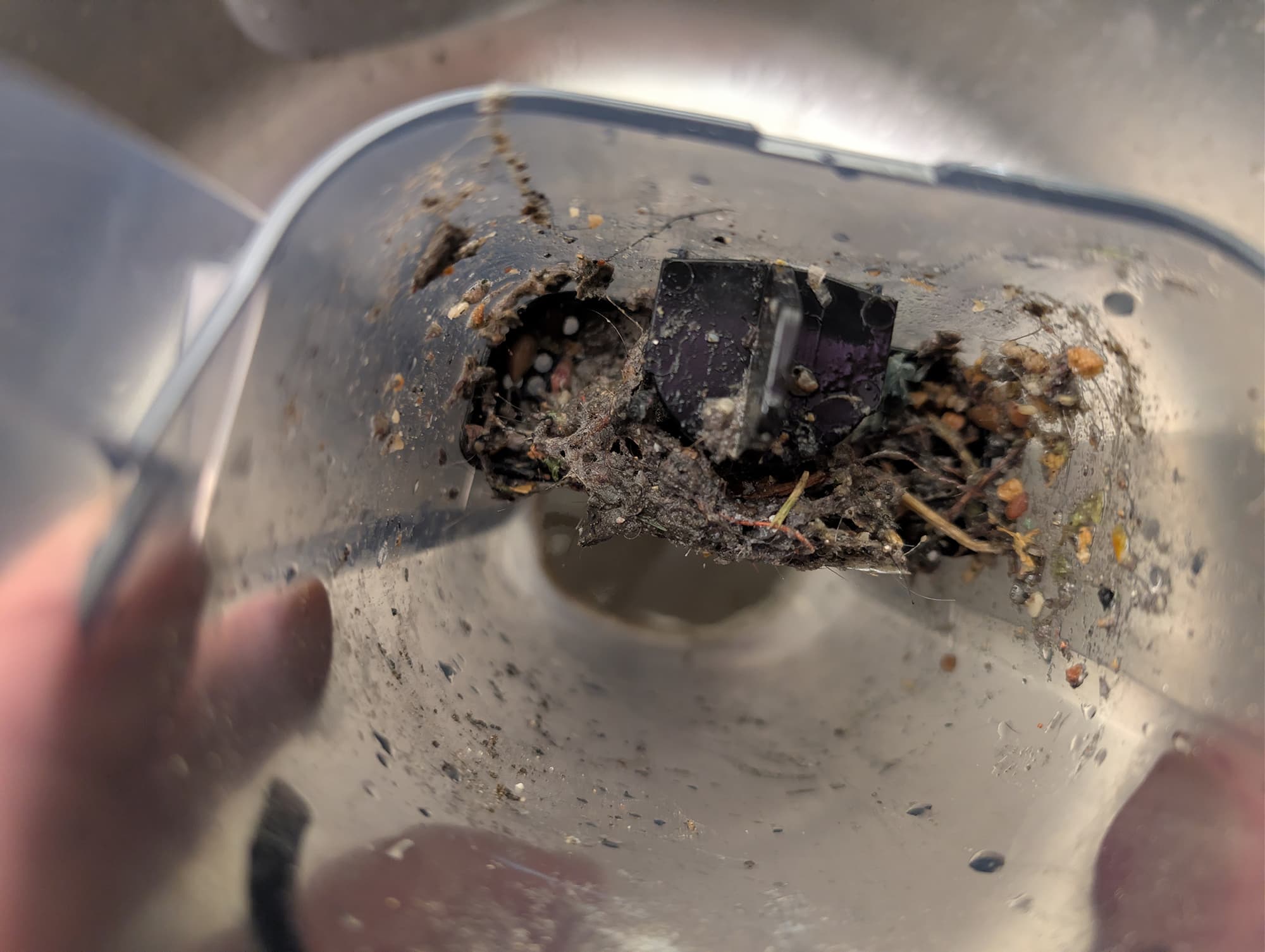 Некоторая часть мусора остается и на сетке моющегося фильтра: его, как и поролоновую губку под ним, следует промывать после каждого опорожнения резервуара.