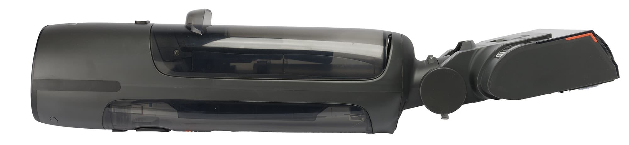 Шарнирное крепление щетки позволяет ей откидываться почти на 90°: это обеспечивает удобную уборку под мебелью на достаточной глубине.