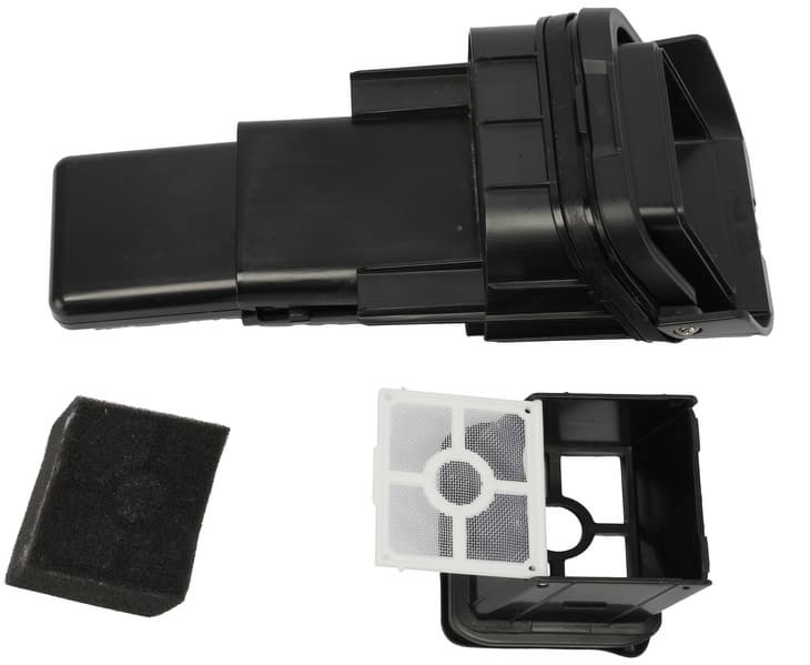Внутри крышки располагается моющийся фильтр, представляющий собой поролоновый элемент, прикрытый капроновой сеткой на откидной рамке.
