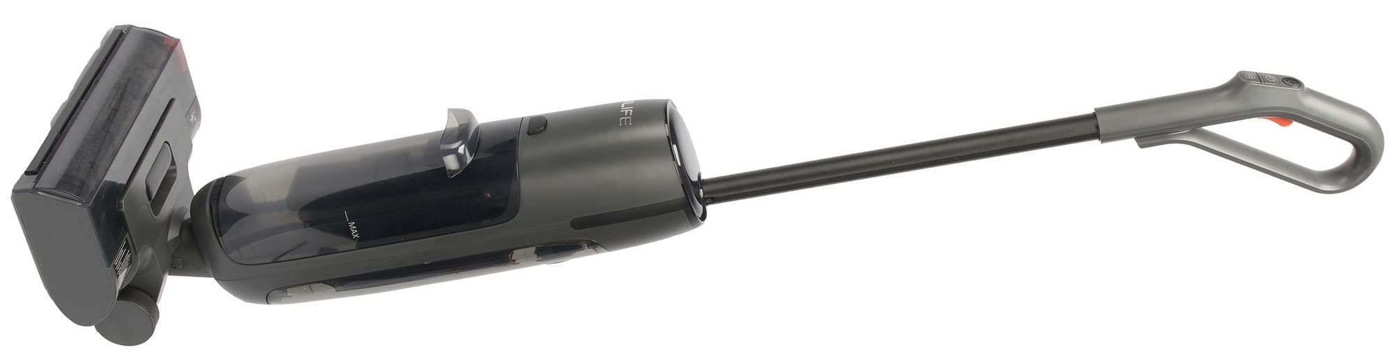 Корпус устройства представляет собой единое целое с единственной насадкой для пола. Компоновка у iLife W90 Pro вполне стандартная для этого типа устройств: в передней части расположен контейнер для грязной жидкости и мусора, а сзади размещается резервуар для чистой воды.