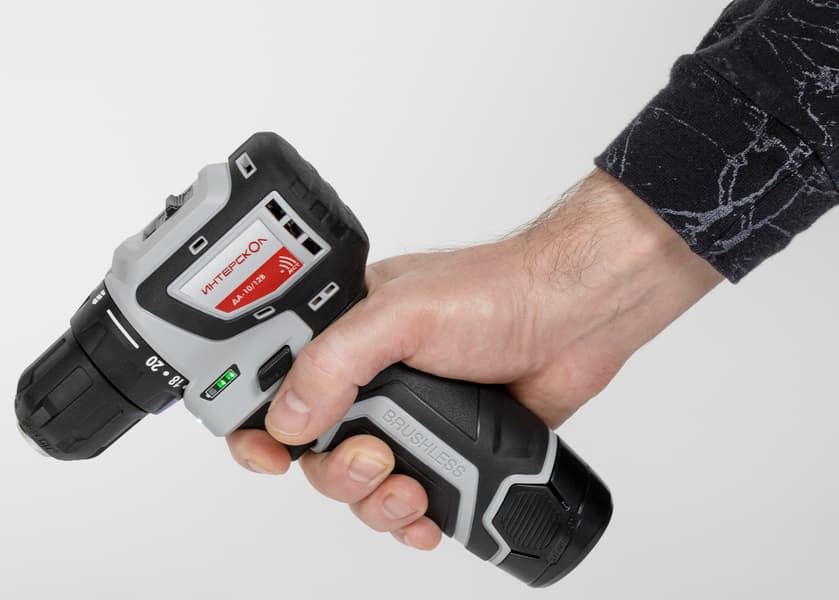 Твердый пластик серого цвета и черные вставки из плотной резины — такова фирменная цветовая гамма Интерскола. Тут, между прочим, стоит отметить недостаток такого выбора. Инструмент должен иметь яркий окрас, как у пчелы. Это знает любой, кто пытался отыскать строительный гаджет в куче других инструментов.