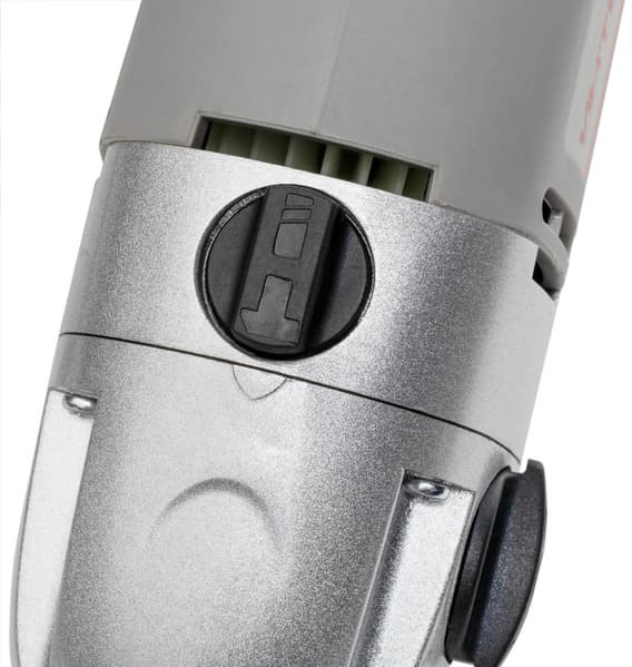 Режим работы (сверление, сверление с ударом) выбирается не переключателем-ползунком, который имеется в большинстве ударных дрелей. Тут используется суровый поворотный переключатель, который можно вращать в любом направлении.