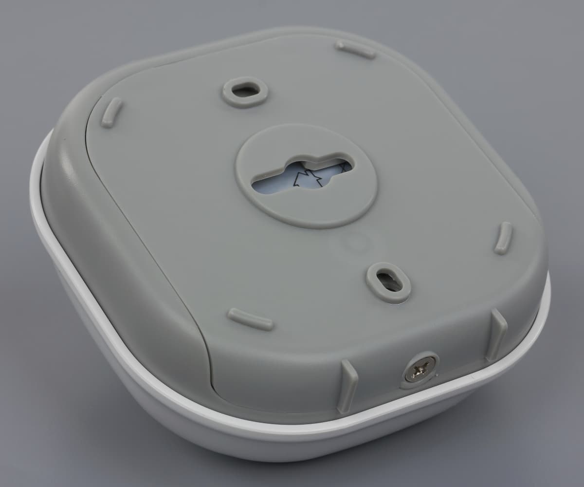 Корпус изготовлен из белого глянцевого пластика. Габаритные размеры с учетом линзы составляют примерно 85×85×48 мм. Под линзой, кроме основного датчика, находятся датчик освещенности и индикаторный светодиод. С задней стороны под настенным креплением скрывается кнопка установления связи. Предусмотрена и звуковая индикация некоторых событий.