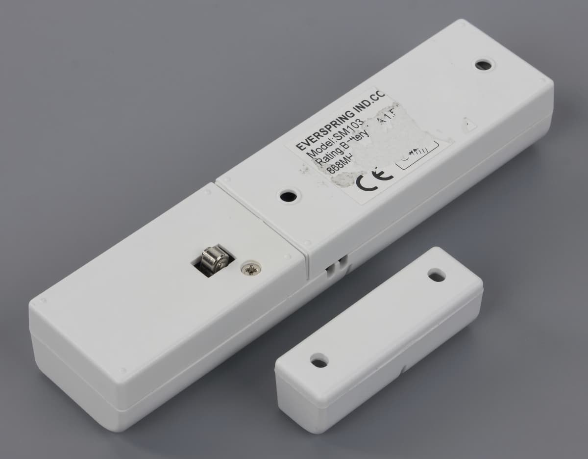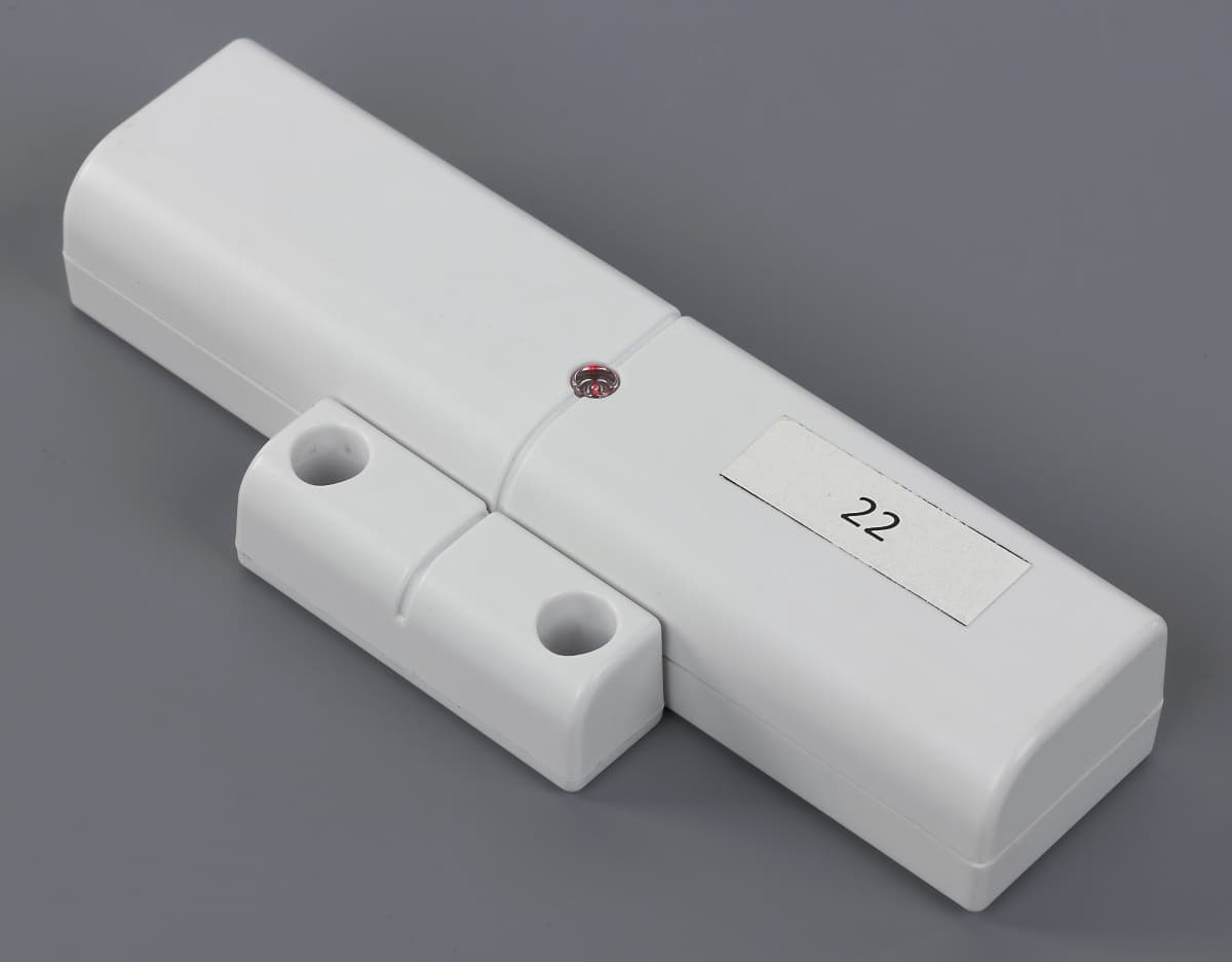 Конструкция этого датчика также вполне стандартна — основной блок с электроникой и батареями и внешний магнит. Несколько удивляют только размеры — 27×20×120 мм для главного модуля и 14×15×45 для магнита. Возможно дело здесь в том, что питание обеспечивается тремя элементами формата AAA. Модель рассчитана на использование внутри помещений.