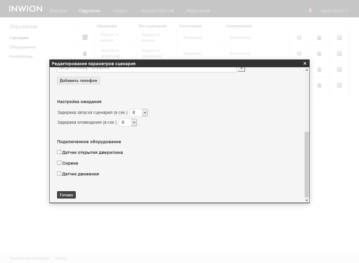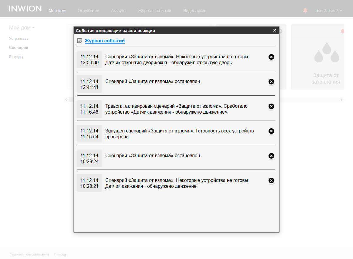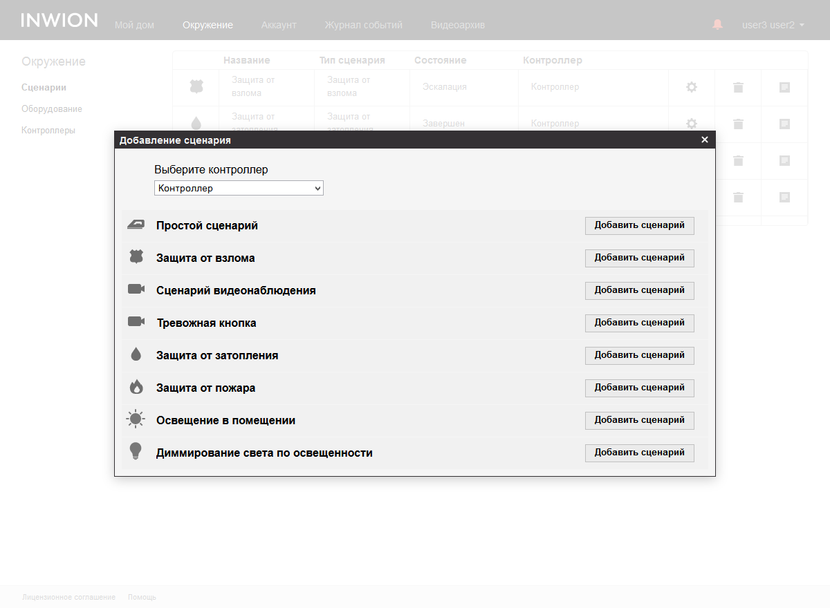 При настройке сценариев пользователь выбирает участвующие в нем устройства. При этом проводится автоматическая фильтрация по их типу. Например, для «Защита от взлома» в списке кандидатов приводятся датчики движения и открытия двери или окна.