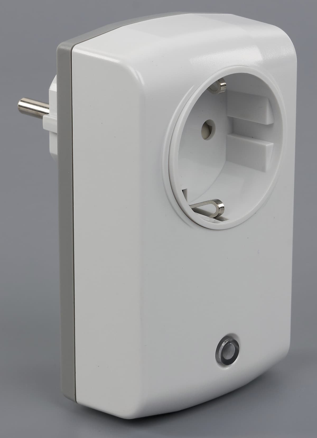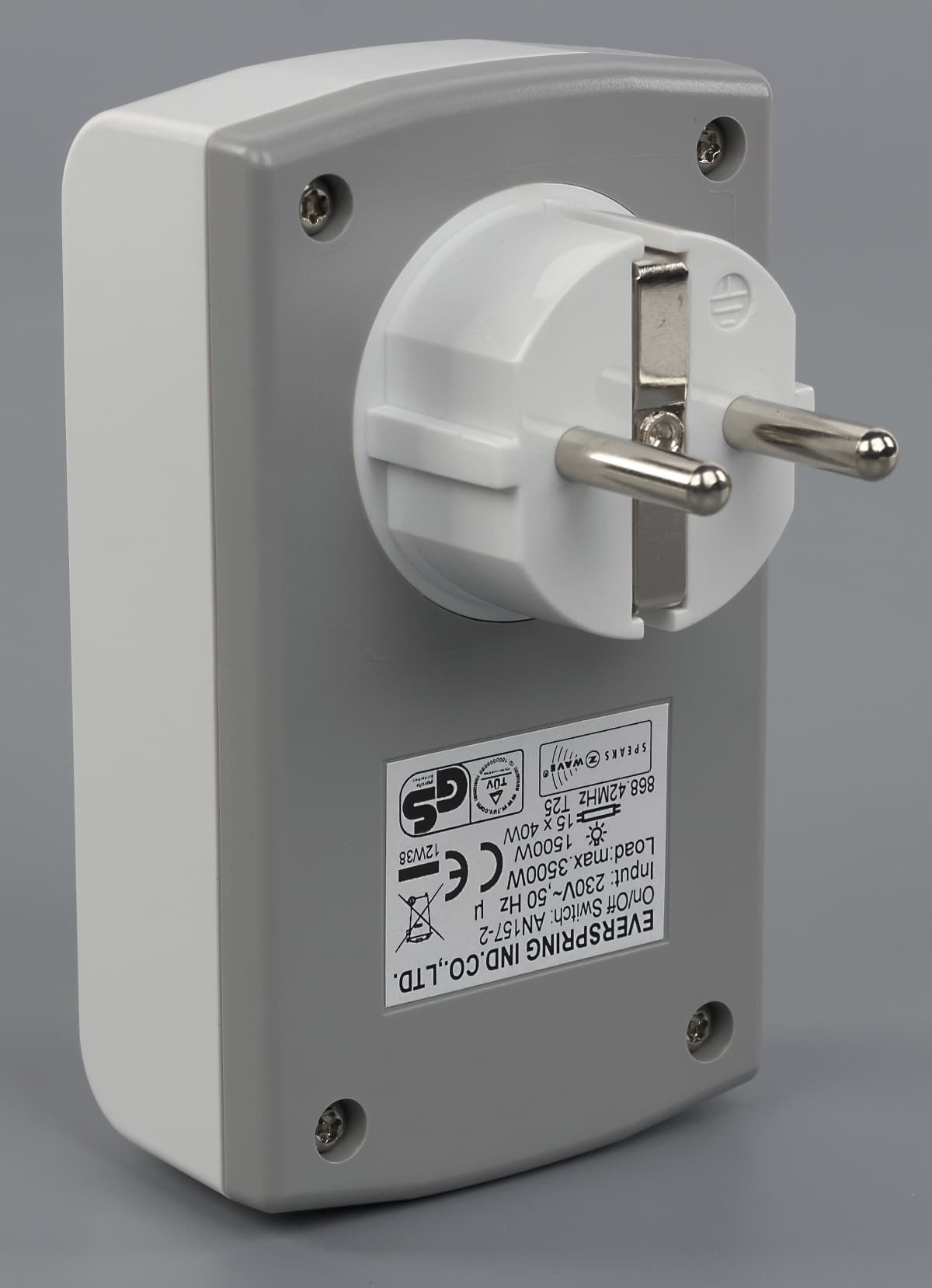 Большинство устройств, о которых мы расскажем в этом материале, произведено тайваньской компанией Everspring. Напомним, что мы уже встречались с ее продуктами в прошлых публикациях по технологии Z-Wave. AN-157 представляет собой проходной выключатель традиционной конструкции. Его корпус изготовлен из крепкого пластика. Основная часть — матовая белая, задняя крышка — светло-серая и тоже матовая. Габаритные размеры без учета вилки составляют 59×36×188 мм.