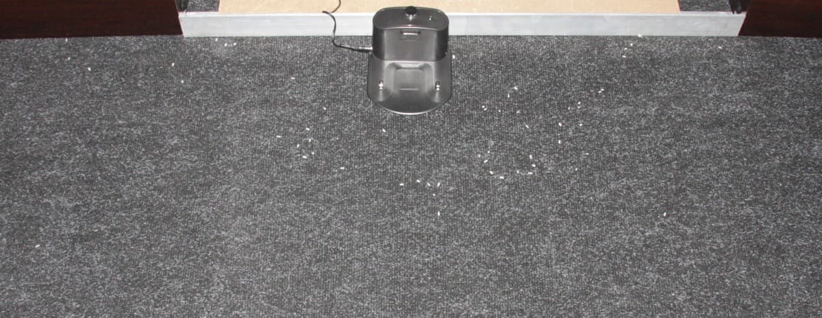 Для сравнения уровень шума в этих условиях обычного (не самого тихого) пылесоса равен примерно 76,5 дБА. Робот можно считать довольно громким. Впрочем, звук не является очень неприятным, слышно в основном работу блока основных щеток и не очень громкое завывание вентилятора. Запускать в ночное время его можно, но только в соседнем от спальной комнаты помещении, и желательно за дверями с хорошей звукоизоляцией. Отметим, что на результаты этого теста также сказалось то, что робот был в употреблении, так как согласно субъективной оценке новый робот 700-й серии работает заметно тише.