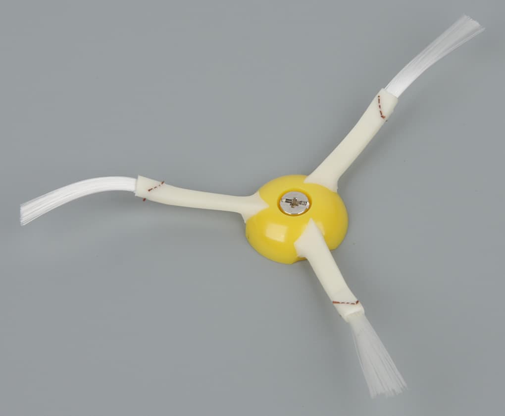 В результате щеточка работает эффективно и не теряет свою форму. (Одна такая щеточка даже при активном использовании робота может прослужить несколько лет, если, конечно, в зоне работы робота нет предметов, представляющих для щеточки повышенную опасность.) Саморез, фиксирующий эту щеточку теперь не выпадает из центрального отверстия (его сложнее потерять) и дополнительно имеет широкий прямой паз, поэтому снять и установить щеточку можно без крестовой отвертки, достаточно монеты (текущий рубль подходит). При этом прямая и обратная совместимость с боковыми щетками от предыдущих моделей сохранилась.