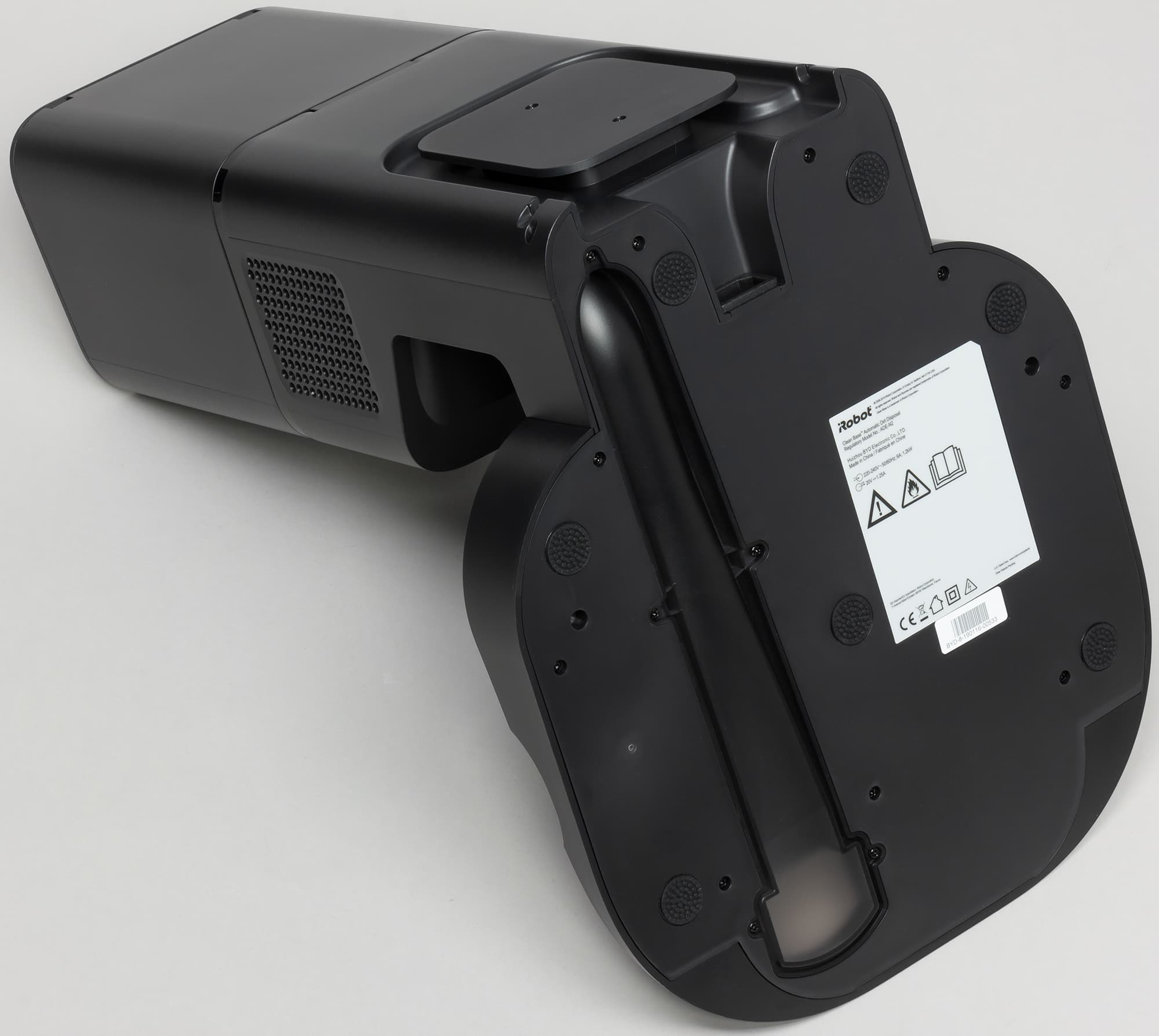 Чтобы добраться до аккумуляторной батареи, нужно снять боковую щеточку, открутить несколько винтов на днище и снять его. В роботе установлена литиевая батарея емкостью всего 26 Вт·ч (14,4 В, 1800 мА·ч). Конструкция батареи новая, совместимости с предыдущими поколениями Roomba нет, что случилось впервые за много лет.