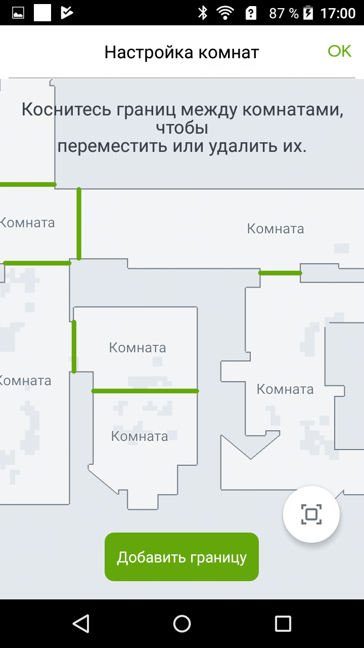 Непосредственно во время уборки пользователь не может видеть в мобильном приложении создаваемую роботом карту и где именно находится в данный момент робот. Это не очень удобно. Кроме того, после первой уборки в новом помещении робот даже не рисует карту, а сообщает, что обучение не закончено. Только после второго прохода карта готова, и пользователь может с ней работать (построена карта тестового помещения, показанного на фотографиях выше):