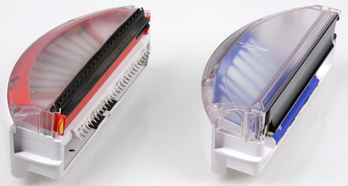 С виду и по тактильным ощущениям щеточки не отличаются от штатных деталей. Тогда как конструкция пылесборников существенно различается. Оба были описаны в статьях «Робот-пылесос iRobot Roomba 521» и «Робот-пылесос iRobot Roomba 630». В кратком изложении: Vacuum bin имеет два отсека, мусор в верхний забрасывается щеточками, легкий мусор засасывается в нижний непосредственно с пола. В AeroVac bin отсек один, мусор в него забрасывается щеточками, а перемещению в пылесборник легкого мусора способствует поток воздуха, проходящий через блок щеток.