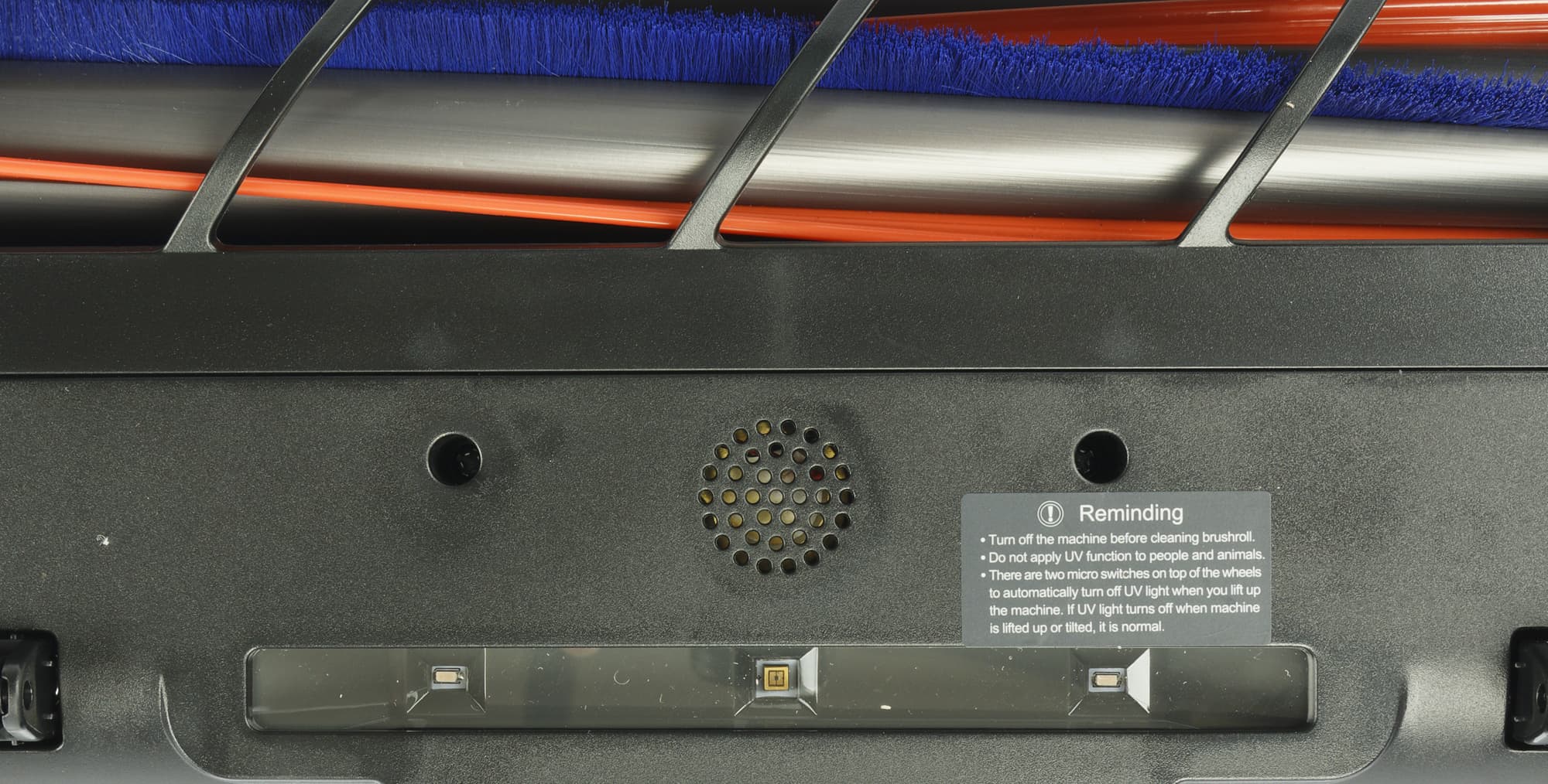 В передней части Т-образной подошвы вращается ротор электрощетки. Ближе к центру размещен блок бактерицидного излучателя, состоящий из трех ультрафиолетовых светодиодов. Согласно заявлениям производителя, использованный в конструкции УФ-стерилизатор позволяет эффективно справляться с 99,9% болезнетворных бактерий, губительно действует на пылевых клещей и разрушает большинство аллергенов.