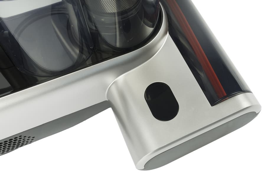 Небольшой овальный дисплей на верхней панели отображает выбранную мощность и активные функции (всасывание, чистку, УФ-обработку и ионизацию).