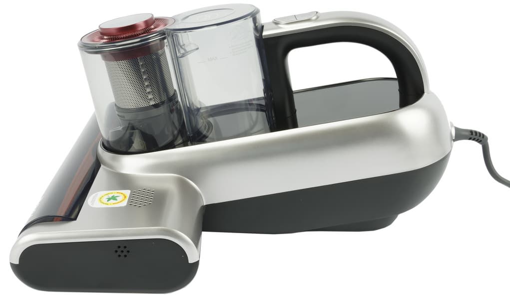 Пылесос удобно лежит в руке, а использовать его несложно: достаточно включить и, плотно прижав, водить по обрабатываемой поверхности — матрасу, подушке, одеялу, ковру или дивану.