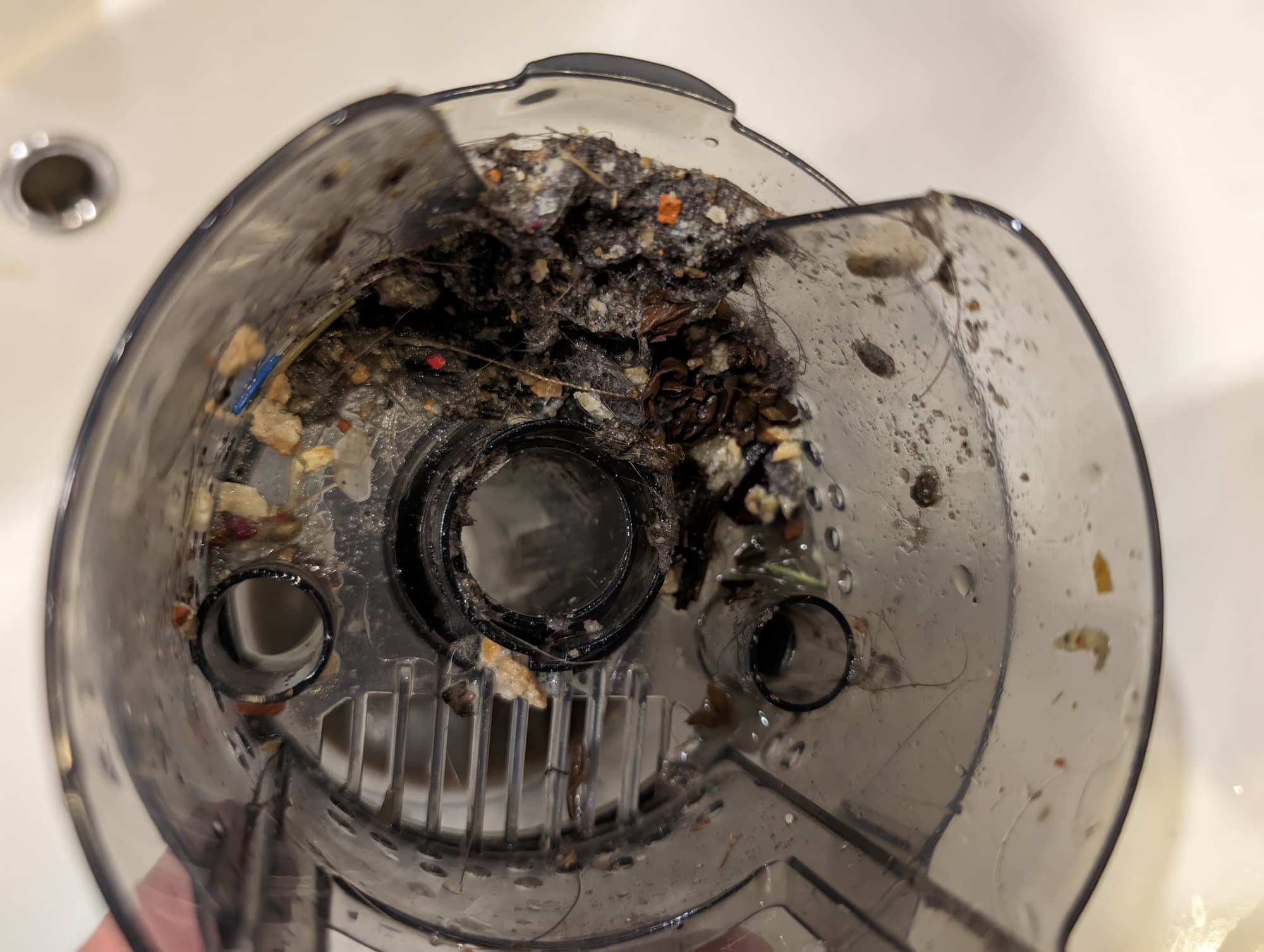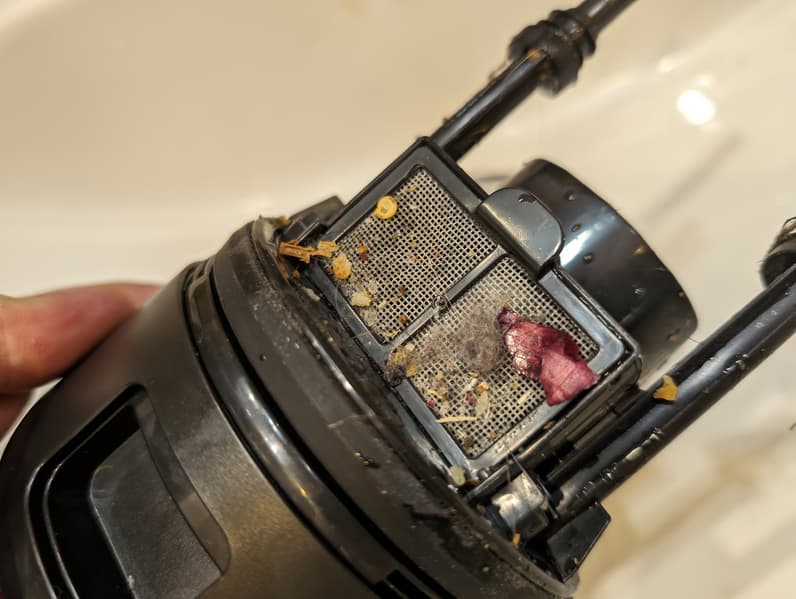 Существенное количество загрязнений задерживает моющийся фильтр — при очистке емкости нужно не забыть и этот элемент. Влажный мусор легко вытряхнуть из резервуара в мусорное ведро, не засоряя канализацию.