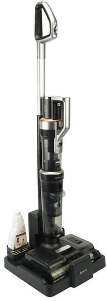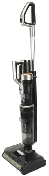 В конфигурации для пола эту модель можно использовать как для сухой, так и для влажной уборки. Ее масса чуть больше, чем у традиционных вертикальных устройств без функции мытья, но это не доставляет дискомфорта при использовании: устройство хорошо сбалансировано, а основной вес приходится на мягкие колеса в основании напольной насадки.