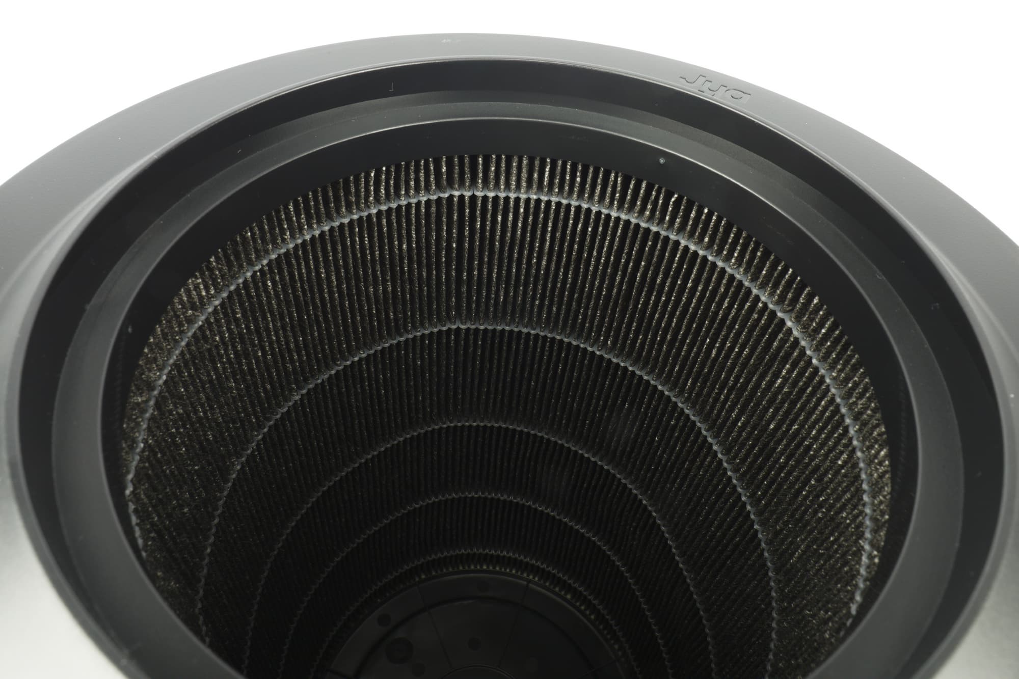 Третий слой составляет гармошка элемента тонкой очистки. Производитель не указывает класс использованного в конструкции HEPA, но декларирует, что разработанный фильтр Jya NanoGuard задерживает до 99,99% микрочастиц PM2.5 и такое же количество болезнетворных микроорганизмов: золотистого стафилококка, E.coli и пневмококков.