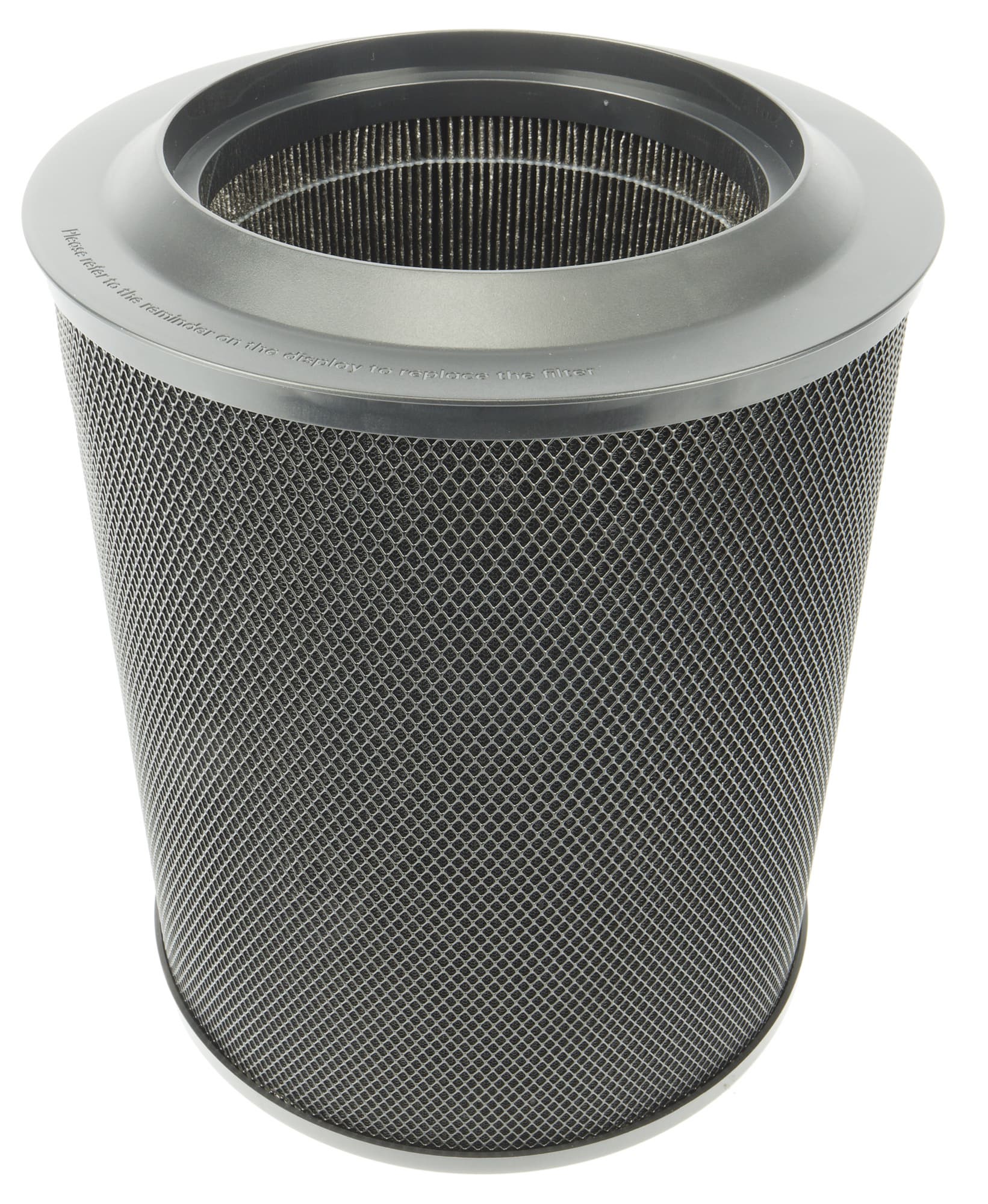 Поступающий в устройство воздух попадает на внешнюю сторону цилиндра, где размещается предварительный сетчатый фильтр, задерживающий крупную пыль, шерсть и мусор. Под ним — слой активированного угля для нейтрализации неприятных запахов и летучей органики.