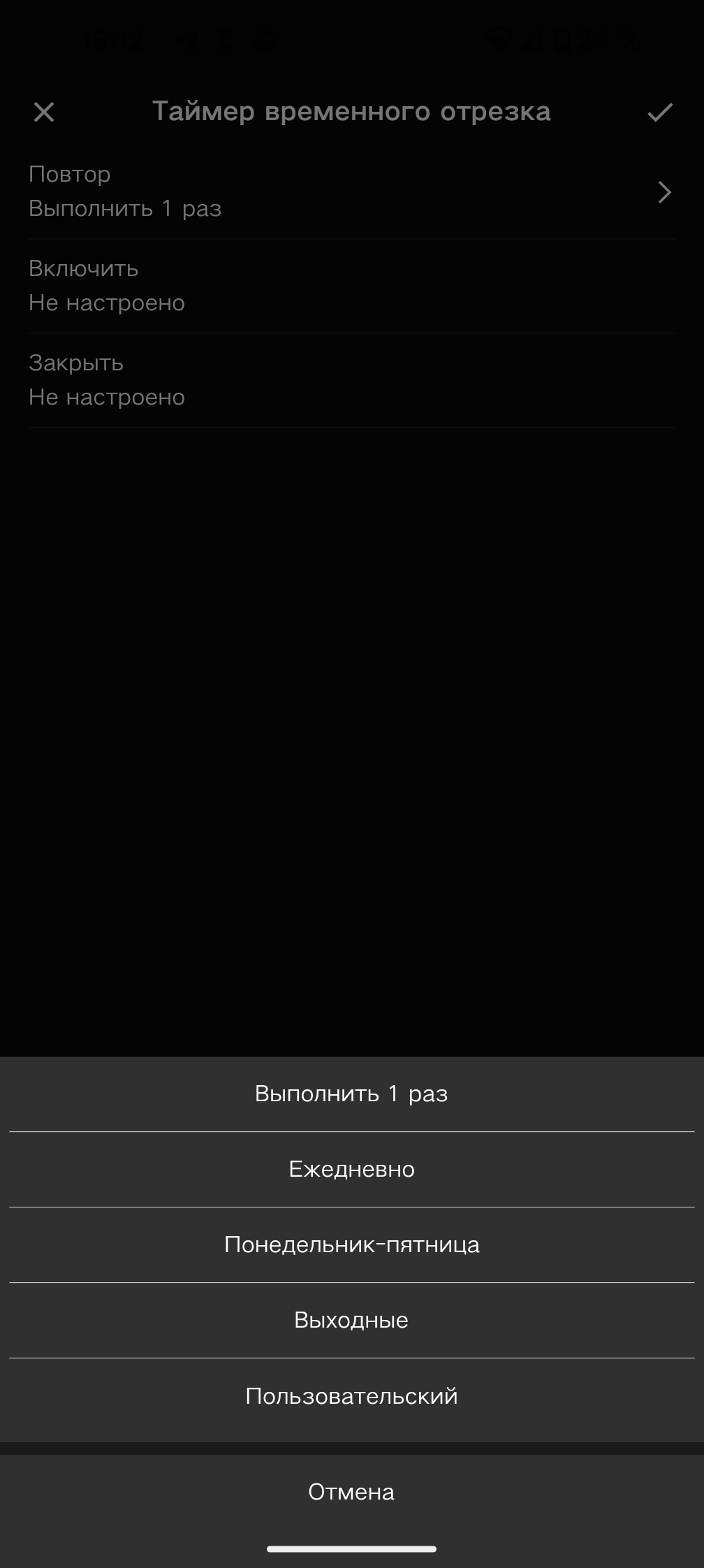 - Пользовательский: применяются настройки, установленные в мобильном приложении