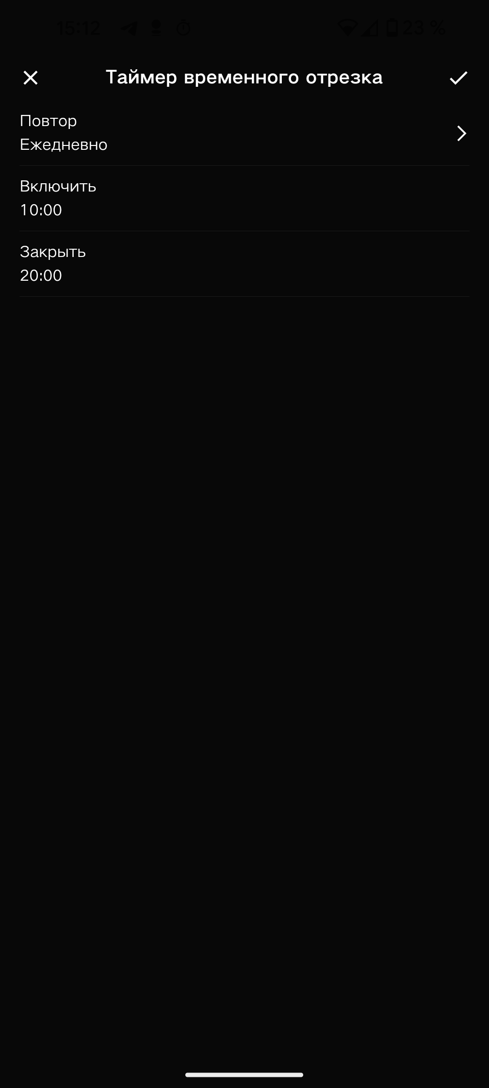 Приложение позволяет также настроить включение и выключение воздухоочистителя по таймеру. В примере выше мы решили запускать прибор ежедневно в десять часов утра, а выключать в восемь вечера. Отметим не слишком корректный перевод интерфейса на русский язык.