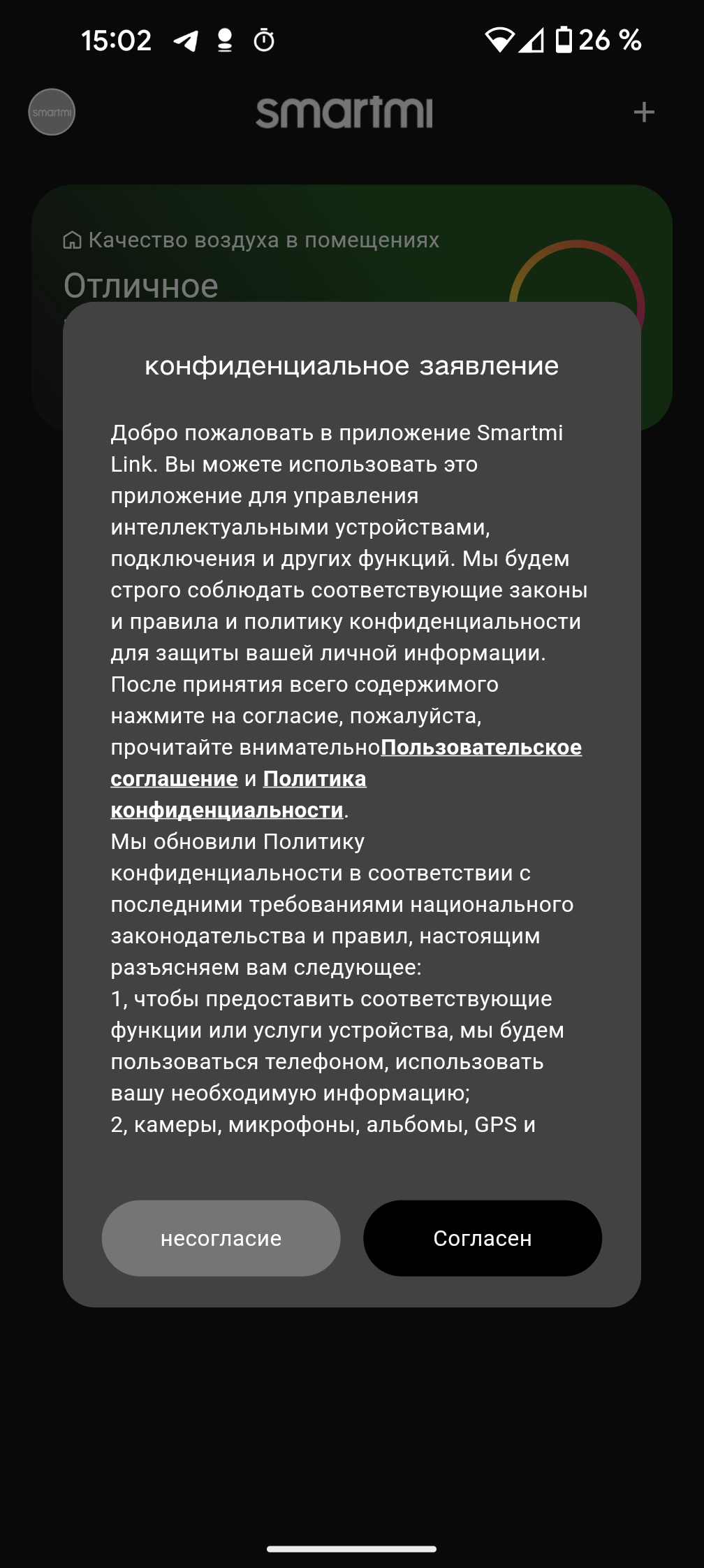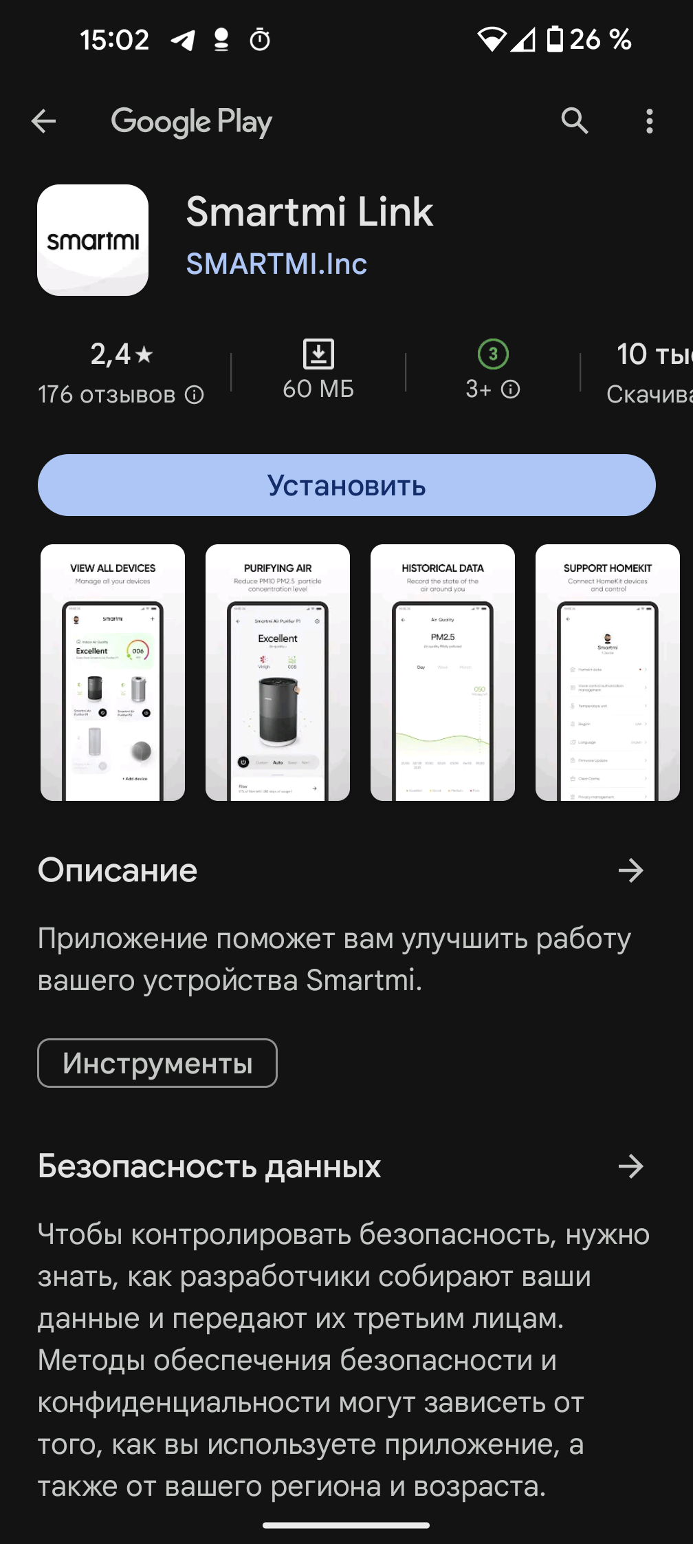 Для управления со смартфона производитель рекомендует приложение Smartmi Link собственной разработки.