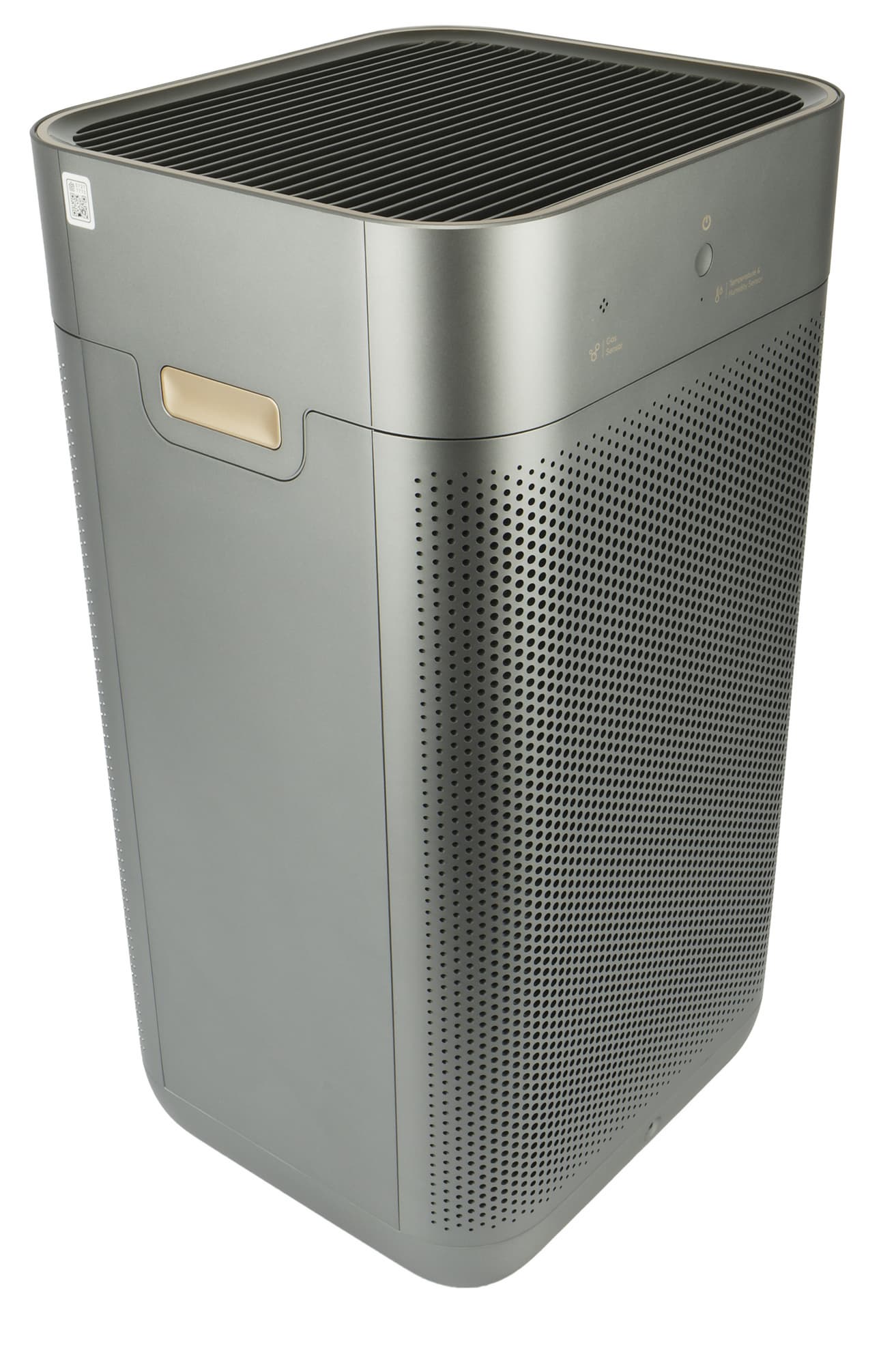 Корпус воздухоочистителя Jya Fjord сделан из гладкого серо-стального пластика с металлическим отливом.
