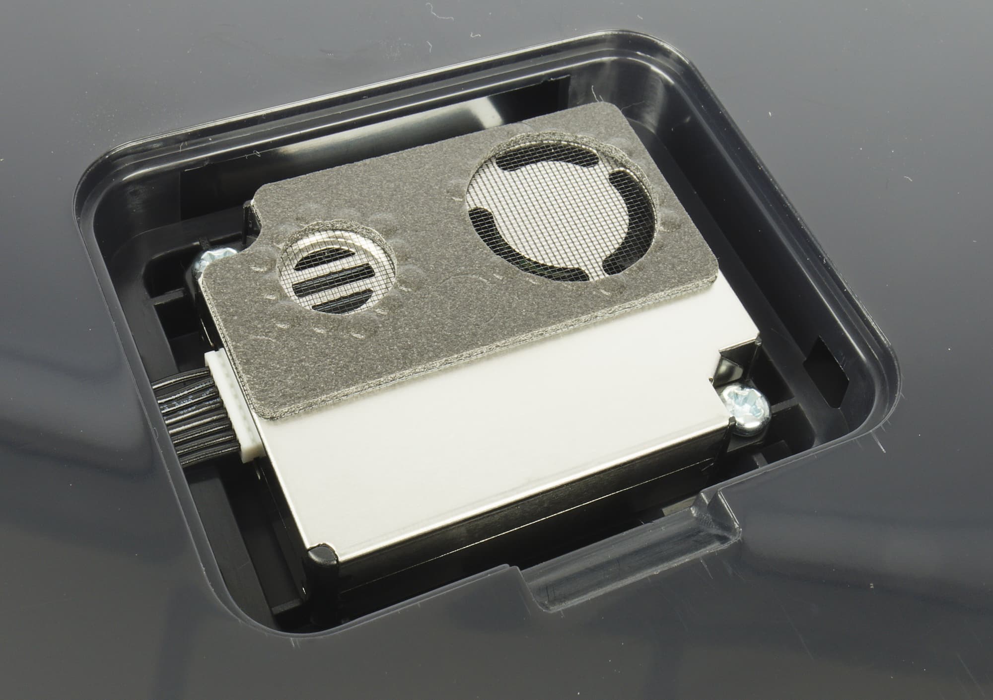 На внутренней его стенке — отсек датчика качества воздуха, закрытый съемной пластиковой решеткой.