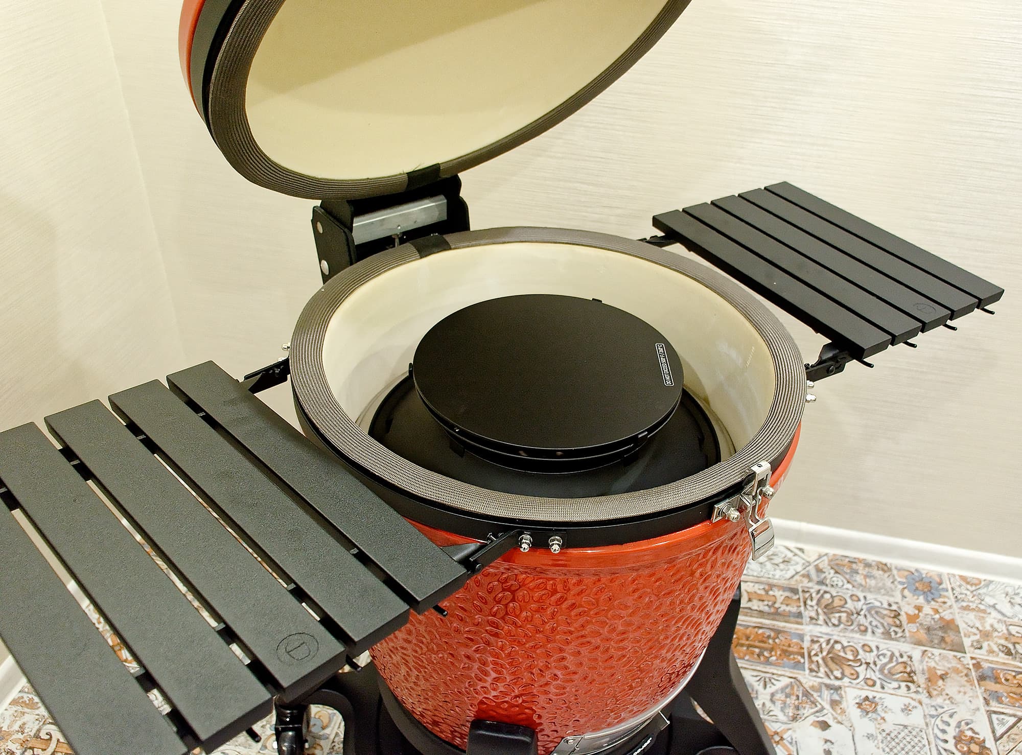 В завершение добавим, что откидные столики у Kamado Joe Classic III полностью алюминиевые, поэтому не боятся даже сильного нагрева.
