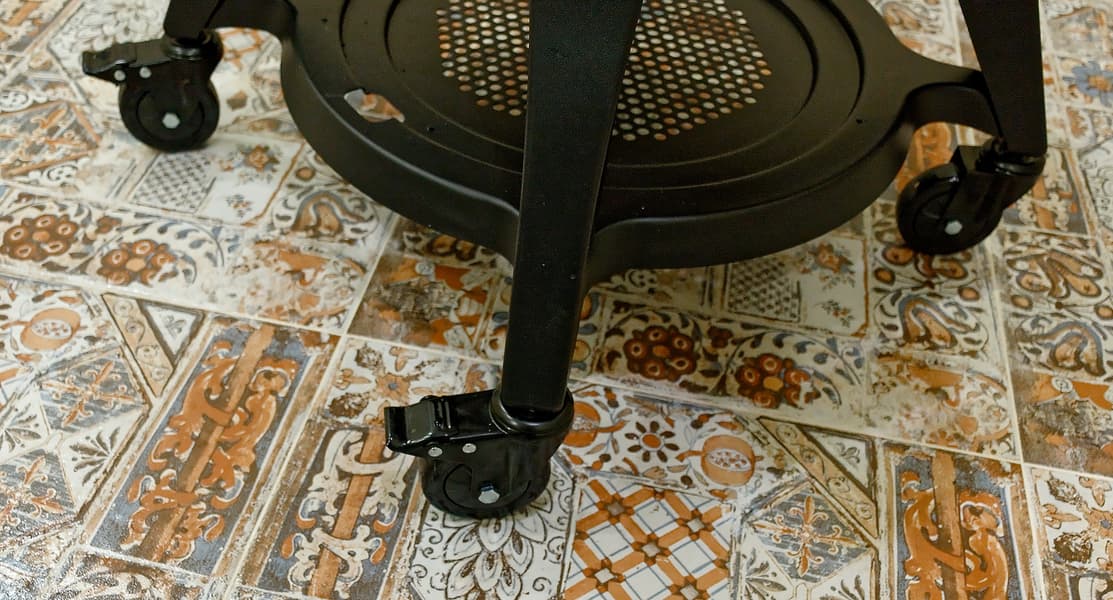 Тележка из литого алюминия внизу имеет полочку, на которую можно что-нибудь положить.