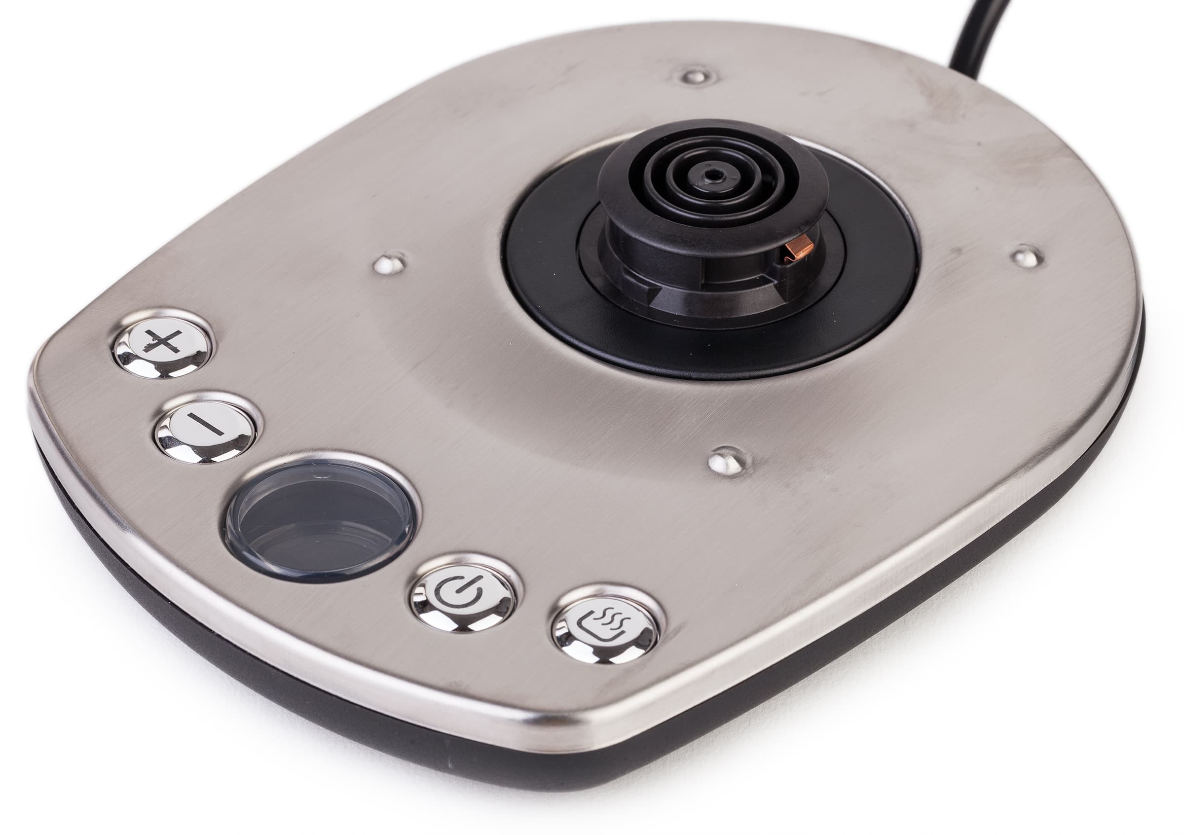 Однако это вынуждает делать их довольно мелкими, что не всем нравится. Поэтому многие производители, наоборот, оставляют на чайнике одну кнопку открытия крышки, а все остальные переносят на базу. Здесь уже можно «разгуляться» и с количеством, и с величиной.