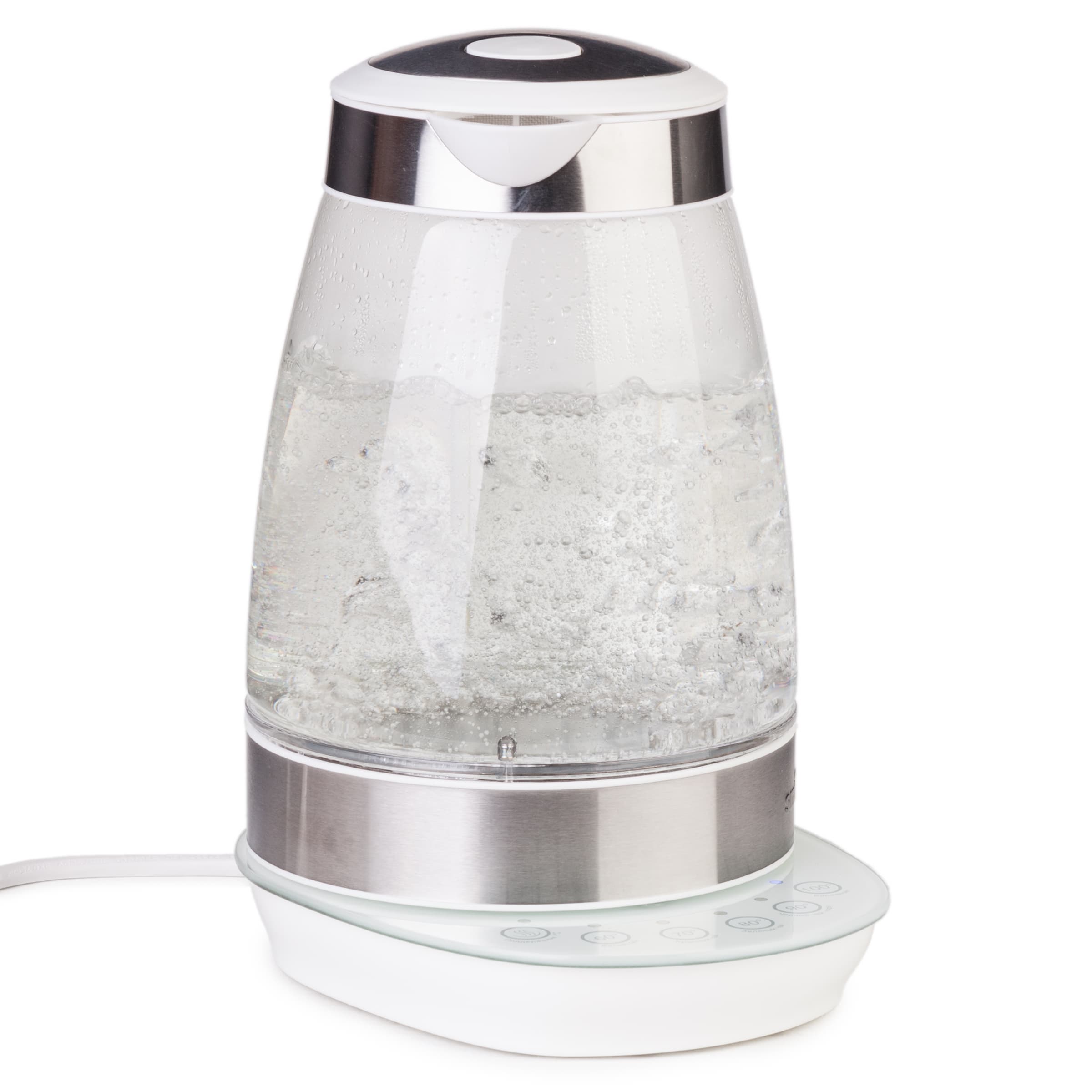 Чайники со стеклянной колбой довольно популярны: они бывают как дорогими, так и дешевыми, даже в дешевых вариантах довольно стильно выглядят, кроме того, как мы будем писать ниже, это идеальный индикатор уровня воды: никакого индикатора не нужно, все и так видно.