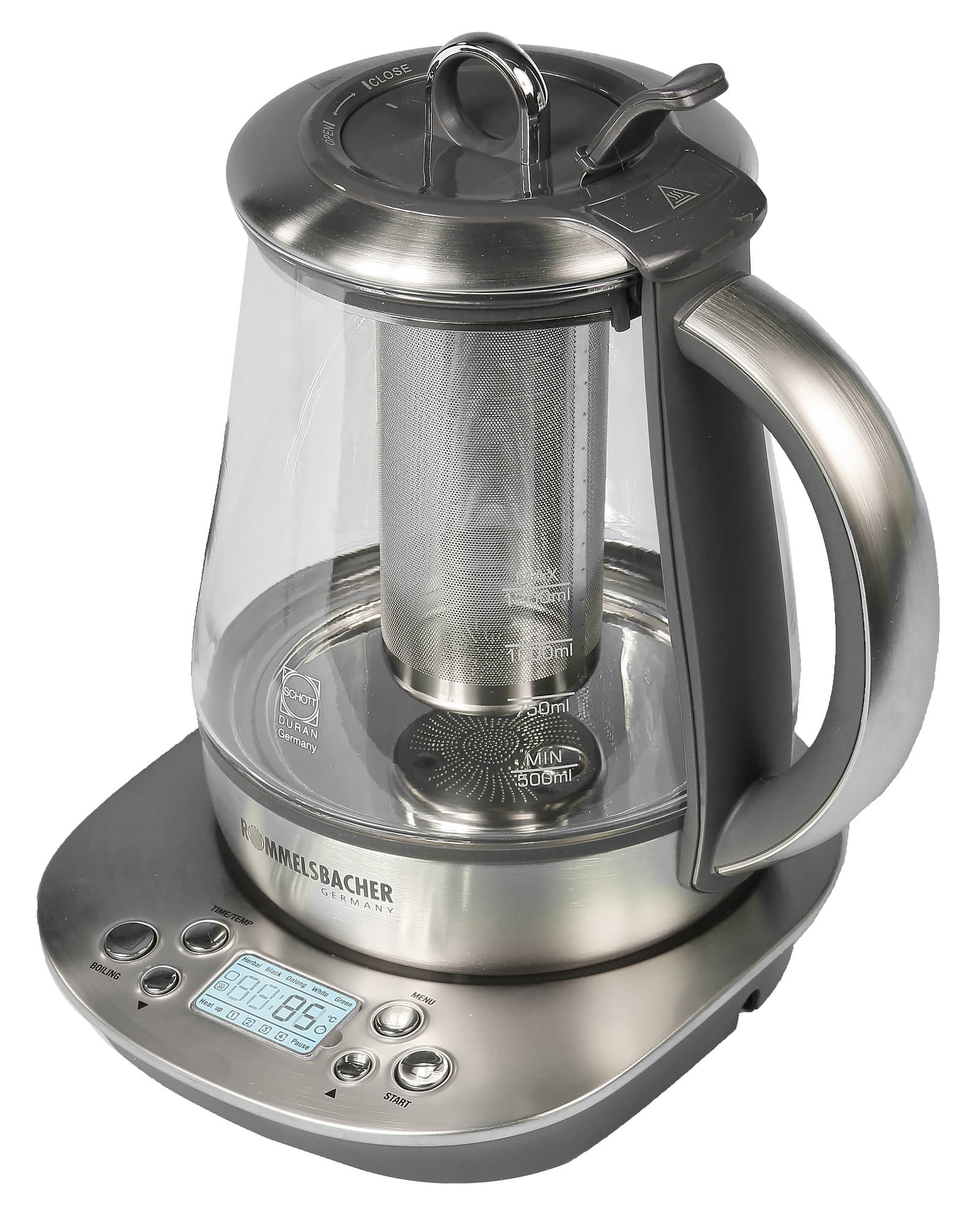 Вот, например, Rommelsbacher TA 1400 — прибор, специально предназначенный для заваривания в нем чая, причем даже поддерживающий несколько различных «программ» для заварки разных сортов с возможностью их модификации. Ну и заодно — просто качественно сделанный чайник приятного внешнего вида. Правда, небыстрый. Но для настоящих чаеманов это, скорее, достоинство.