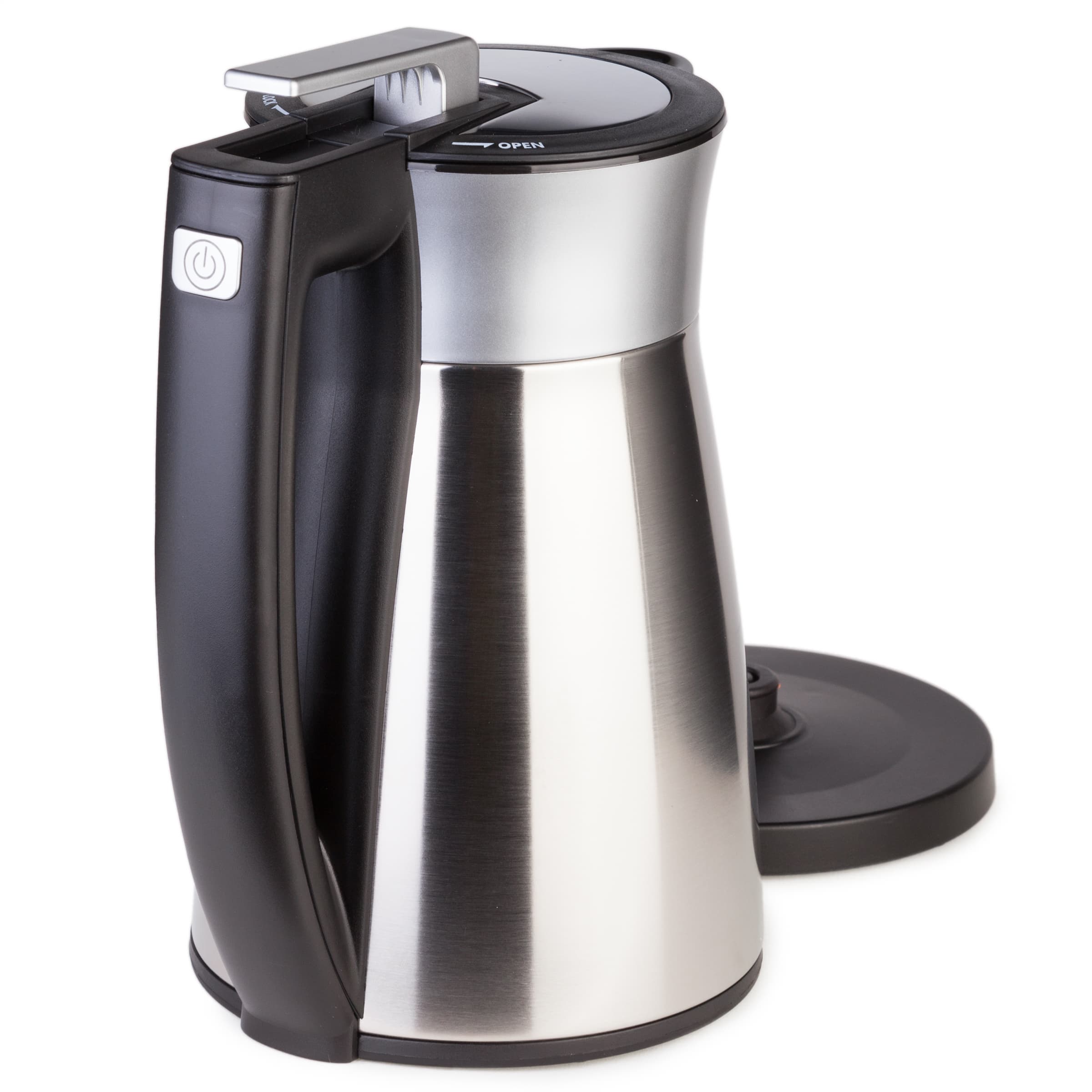 Еще один пример — чайник-термос Caso VakO2. Основная его фишка — термоизоляция колбы, которая позволяет за первый час после кипячения потерять всего 10 °C температуры, а за три часа — всего 20 °C. Таким образом, даже через 3 часа после закипания вода в чайнике будет иметь вполне употребимую температуру 80 °C. В остальном же это симпатичный, но довольно маленький (1,5 л) чайник без датчика уровня воды.