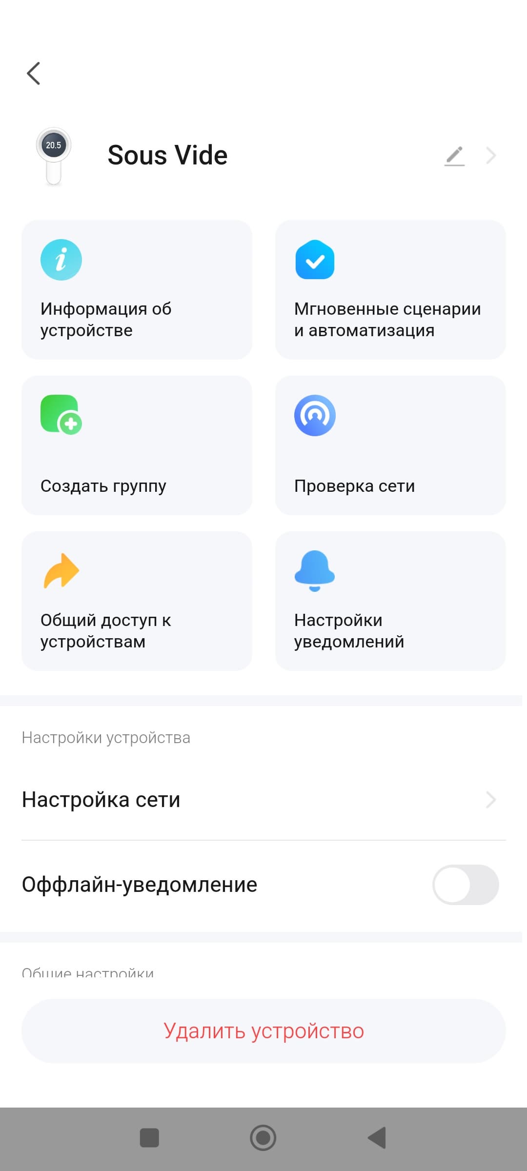 Что еще интересного? Можно переименовать прибор, расшарить доступ к управлению им, а также создать группу устройств умного дома.